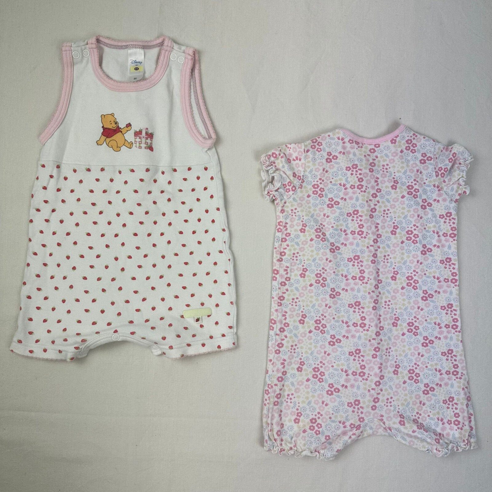 Autres commentaires : 2 combicourts rose et blanc une manches courtes et l’autre sans manches en fleuri.