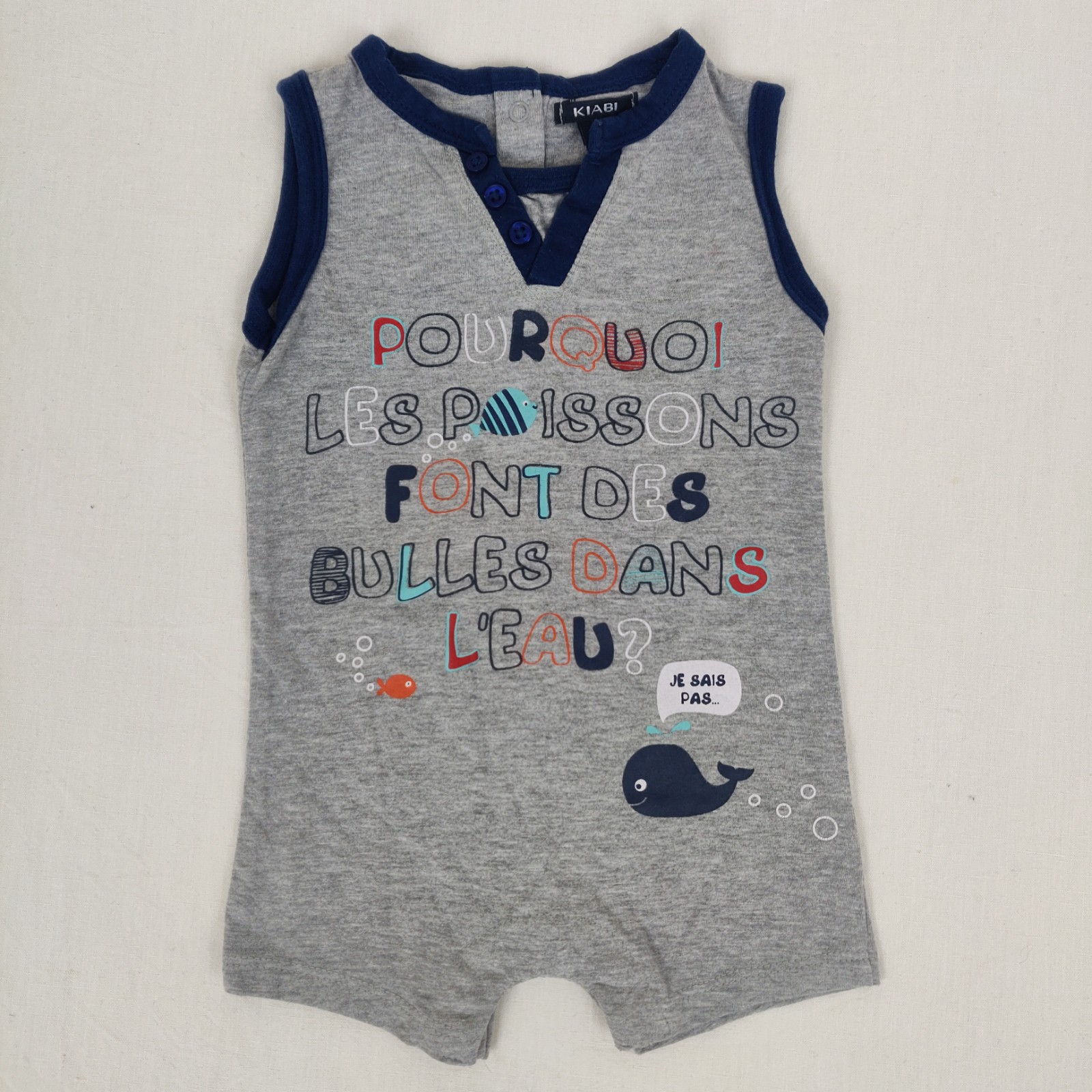 Autres commentaires : Combicourt gris sans manches, col V avec 3 boutons et motif Pourquoi les poissons font des boules dans l’eau.