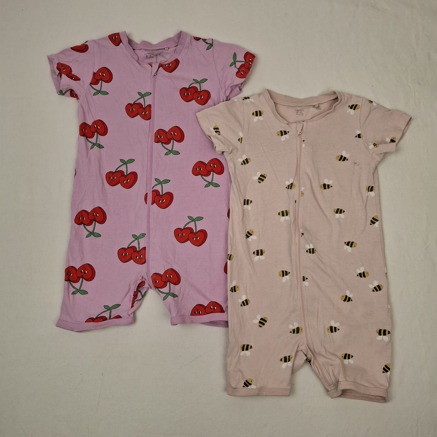 Autres commentaires : Combicourt rose avec des motifs de cerises, fermeture par zip. OFFERT : un beige avec des motifs d’abeille – taché