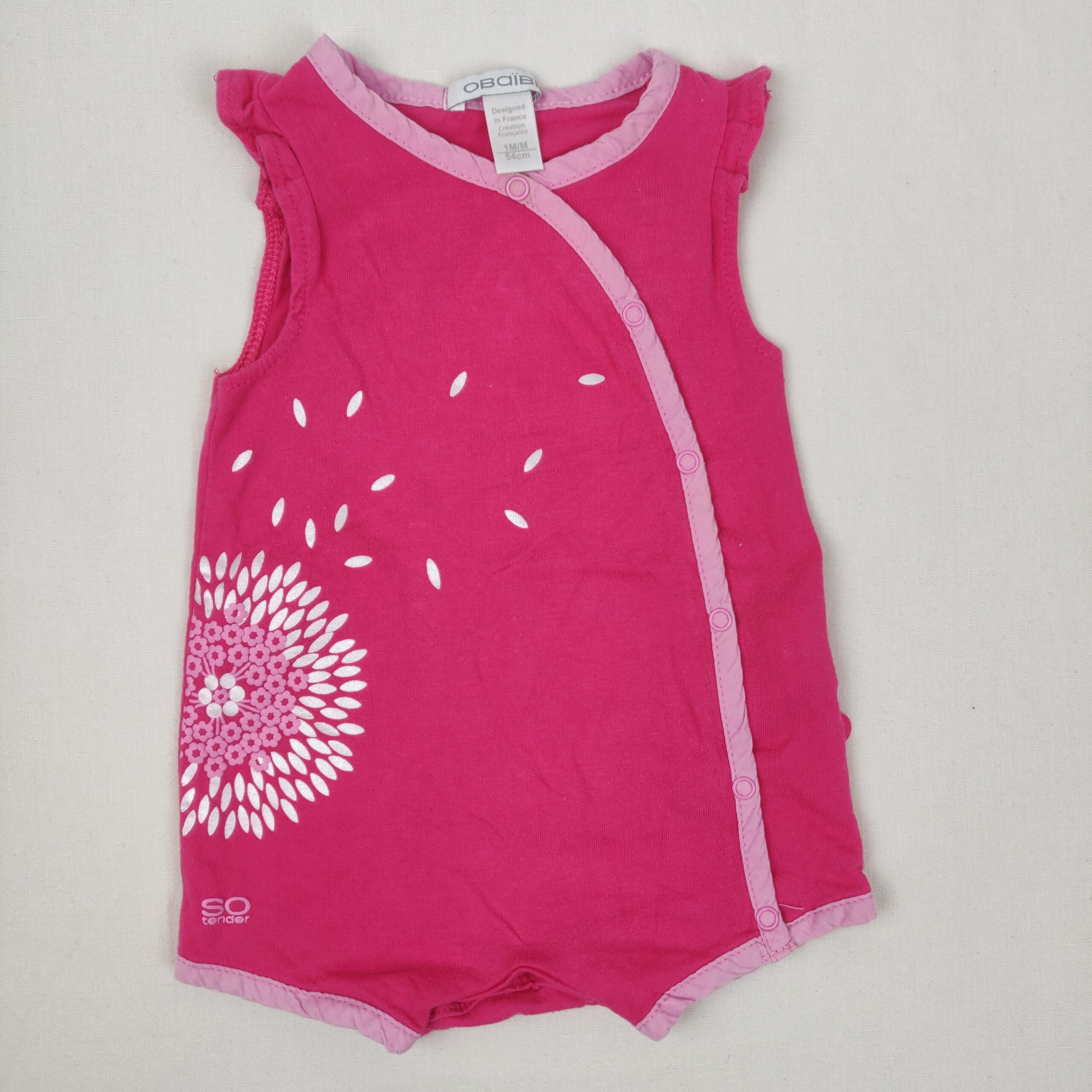 Autres commentaires : Combishort fermé à l’avant par des boutons pression. Petit tache sur le bouton du haut. Motif fleu de pissenlit