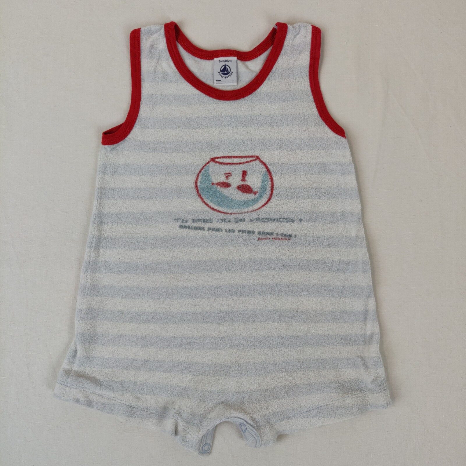 Autres commentaires : 15% polyamide. Combishort en éponge, en bon état excepté quelques fils tirés à l’arrière.