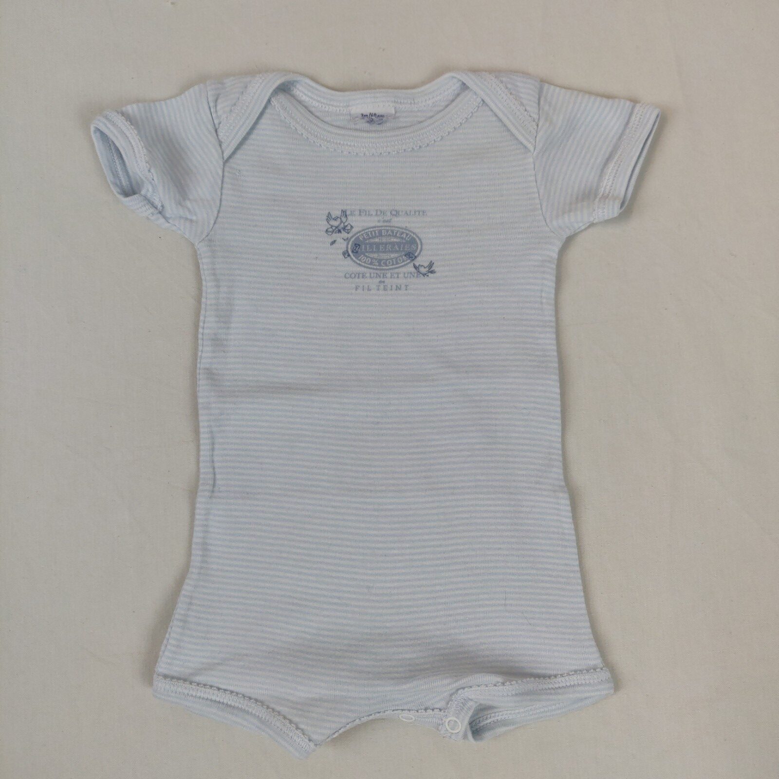 Autres commentaires : Combicourt à manches courtes motif milleraies bleu clair et blanc. Motifs centraux deux petits oiseaux.