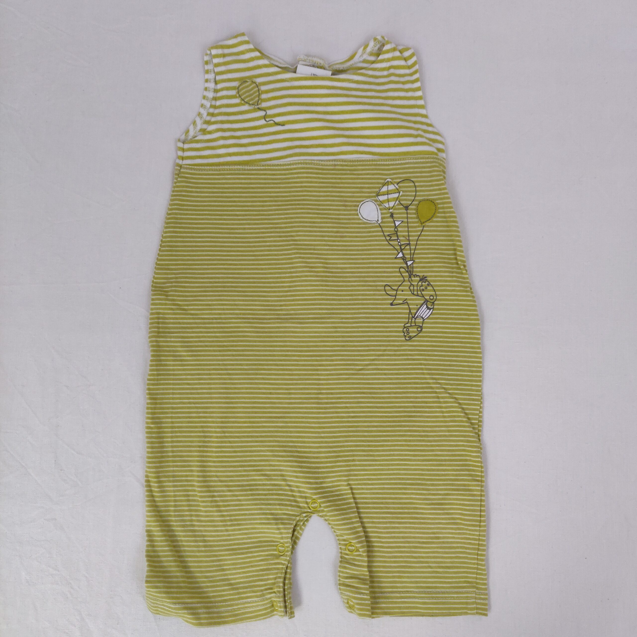 Autres commentaires : Combishort rayé vert anis et blanc, sans manches, fermé au dos par boutons pression.