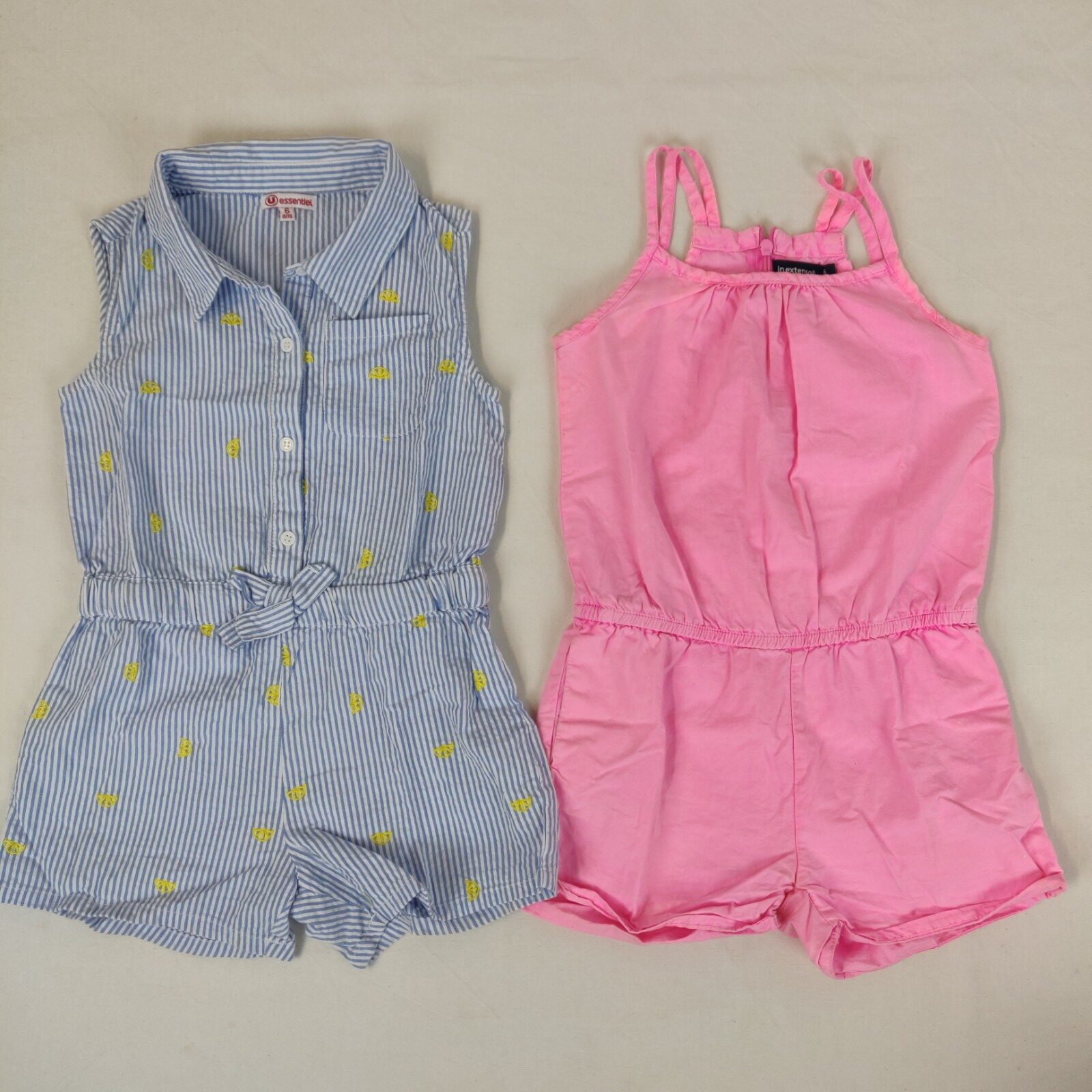 Autres commentaires : Combinaison rose In Extenso , simple et courte avec fermeture au dos. Combinaison courte bleu U Collection avec des rayures et des petits dessins jaunes . Fermeture par des boutons simples et un petit poche à droite . broderie à 100% de polyester.