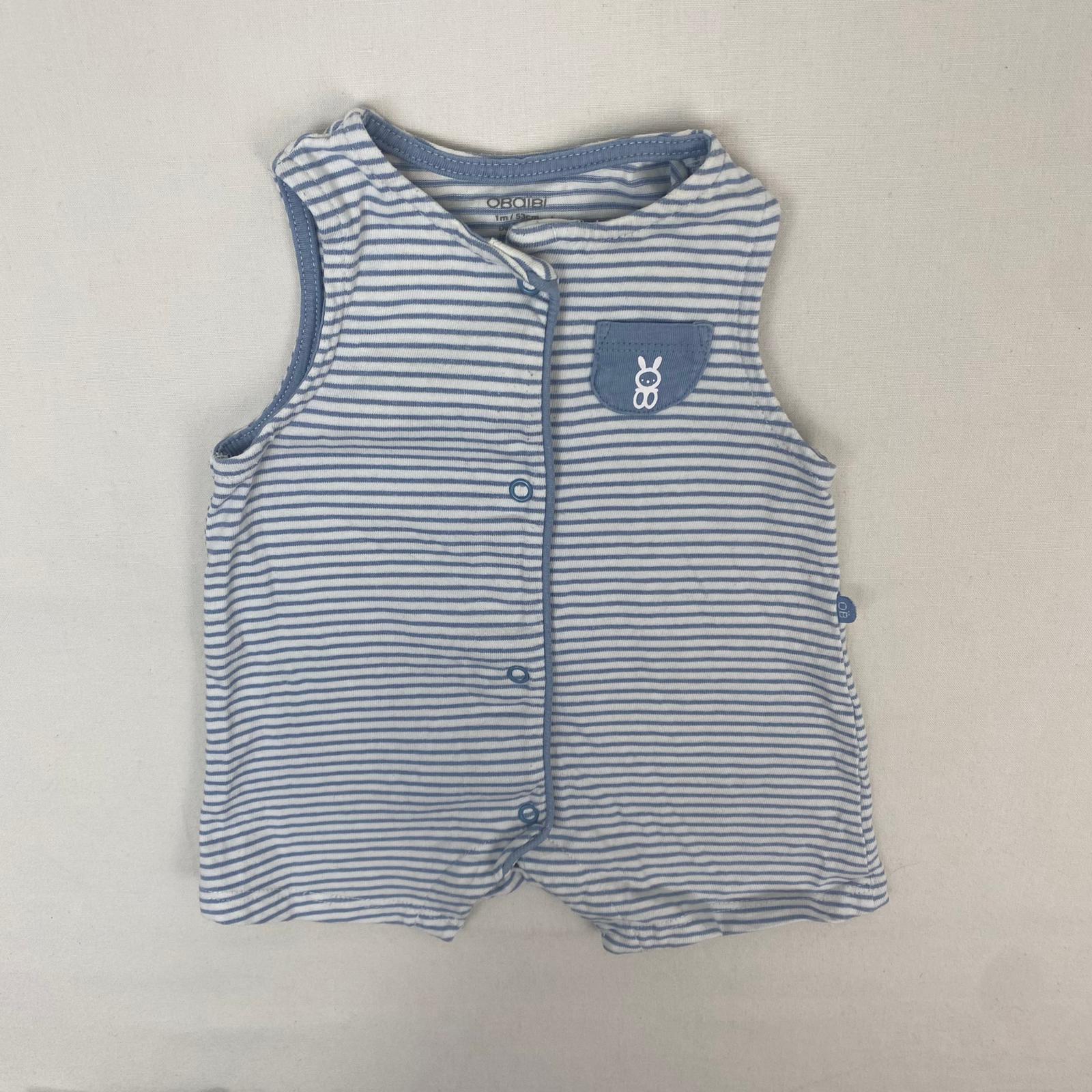- Combinaison courte blanche avec des rayures bleues, col rond, fermeture par boutons pression