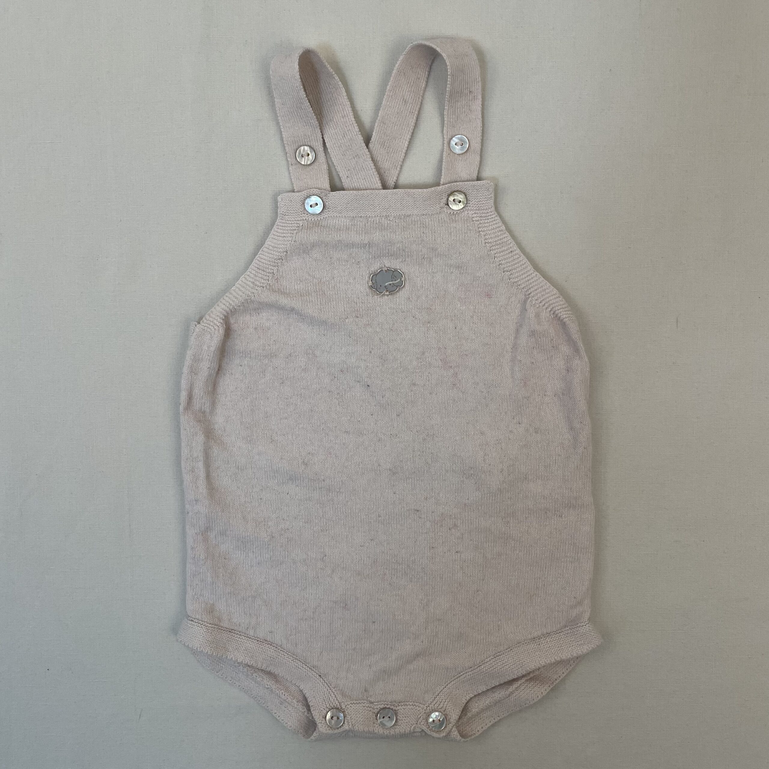 - Combinaison courte en maille fine rose pâle, bretelles réglables par deux boutons, fermeture à l’entrejambe par petits boutons classiques