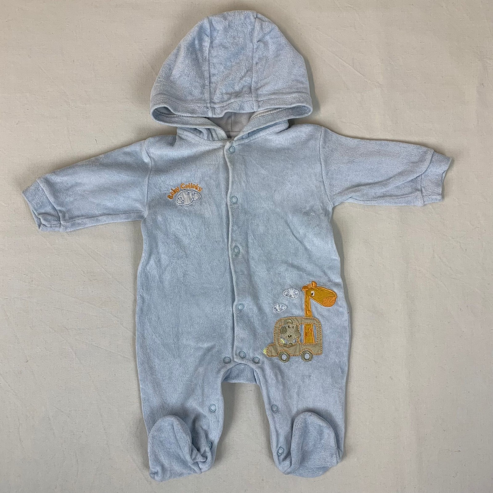 Autres commentaires : Combinaison longue bleu manches longues férmée devant par des boutons pressions.
