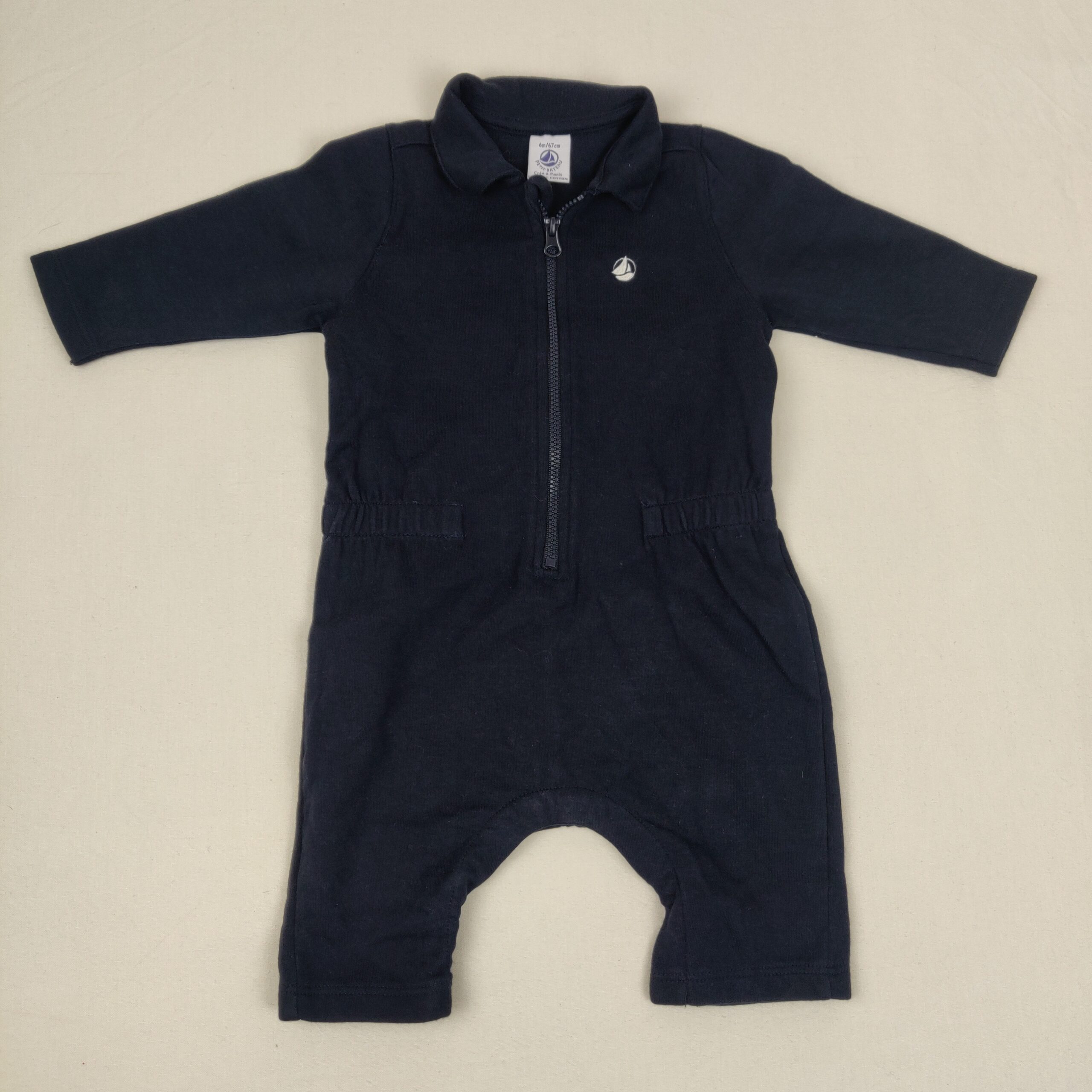 Autres commentaires : Combinaison longue avec taille élastique fermée par zip sur le devant et boutons pression à l’entrejambe