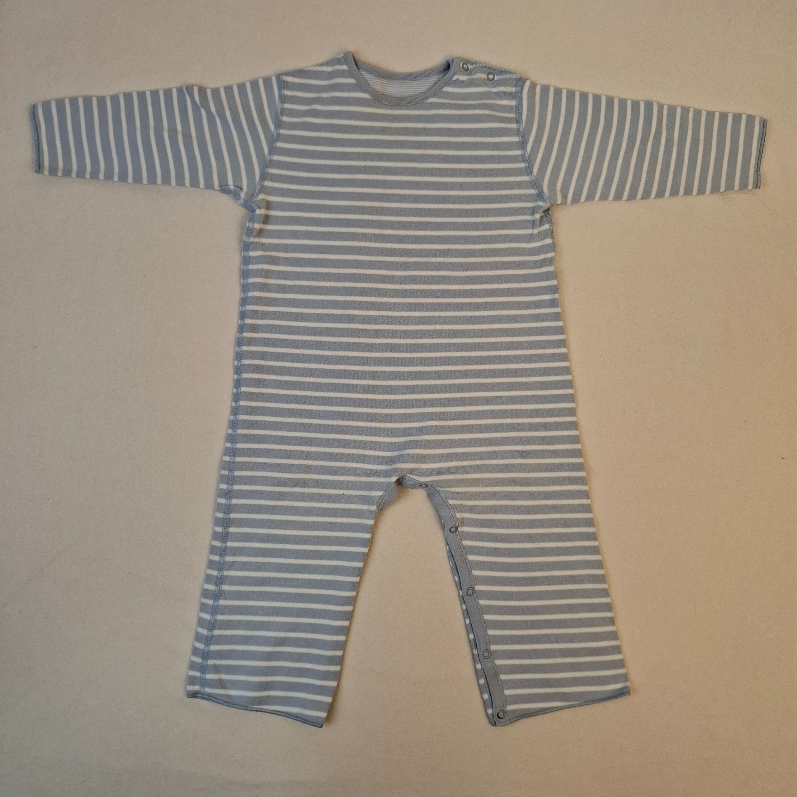 - Combinaison longue style marinière bleue et blanche, taille estimée 6 ans.