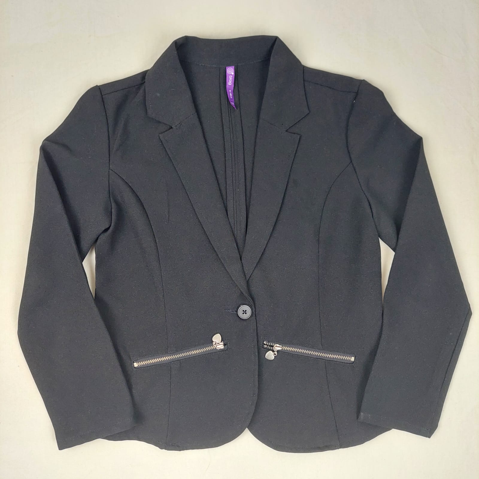 Autres commentaires : Blazer léger court, cintré, deux zips décoratifs en guise de poches