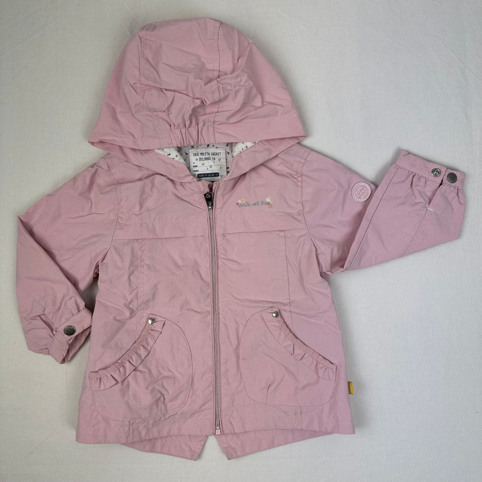 Autres commentaires : Blouson rose avec capuche et une fermeture devant en zip et 2 poches latérales.