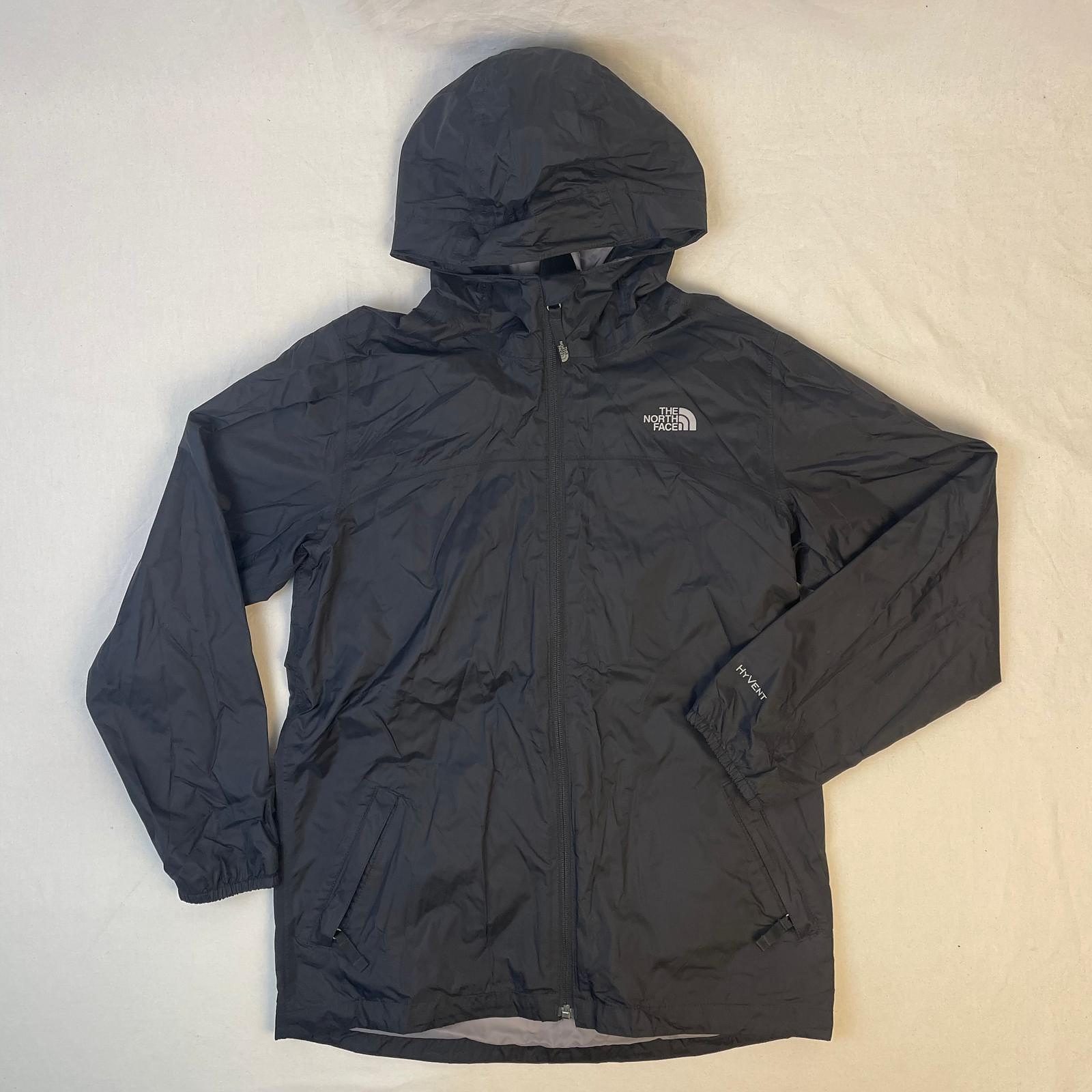 - Veste imperméable noire à capuche, fermeture devant par zip, doublure grise.