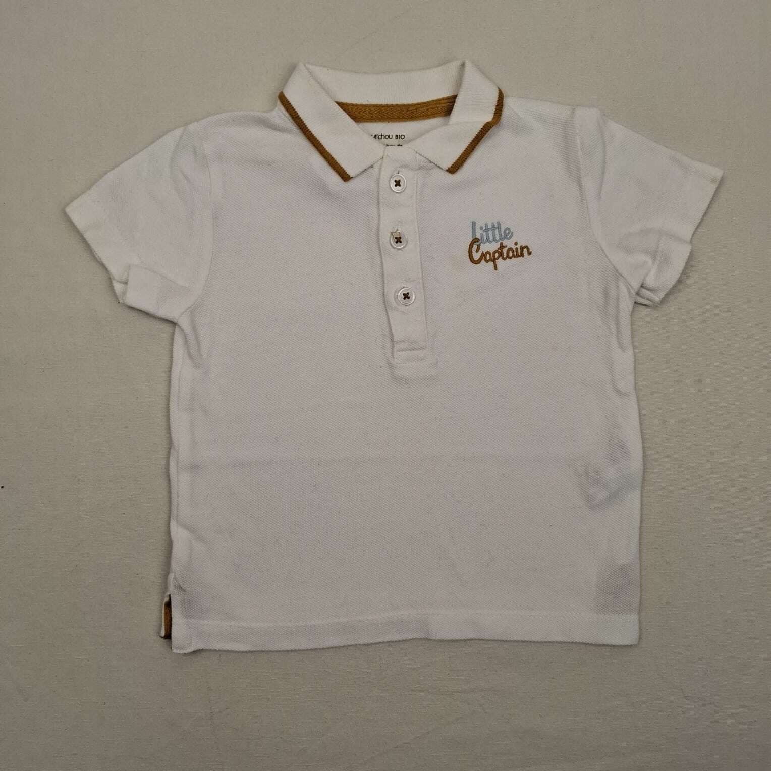 Autres commentaires : Polo blanc, finitions marron, Bout’chou, boutons fermer le col, inscription Little Captain brodé à l’avant du vêtement pour