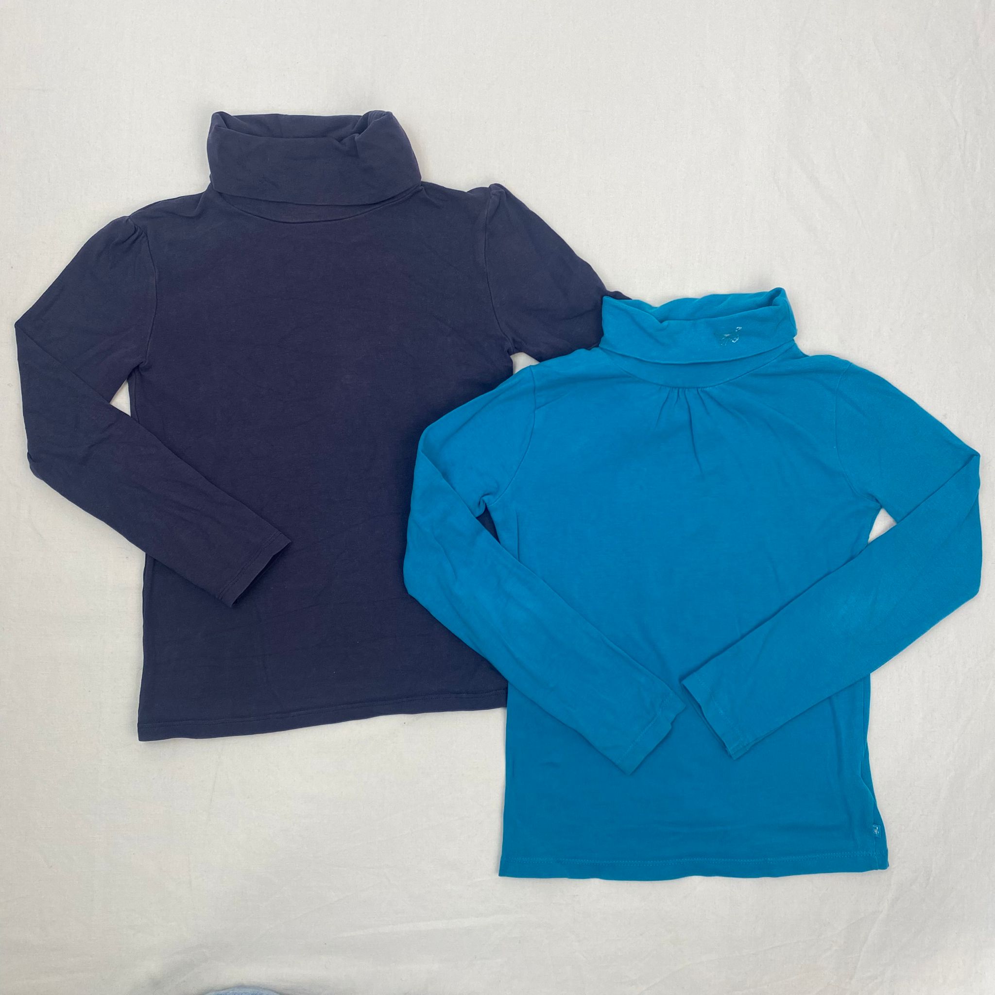 Autres commentaires : 5% elasthanne. Lot de 2 t-shirts bleu manches longues col roulé : un bleu foncé Tape à l’oeil et un autre bleu ciel Okaïdi