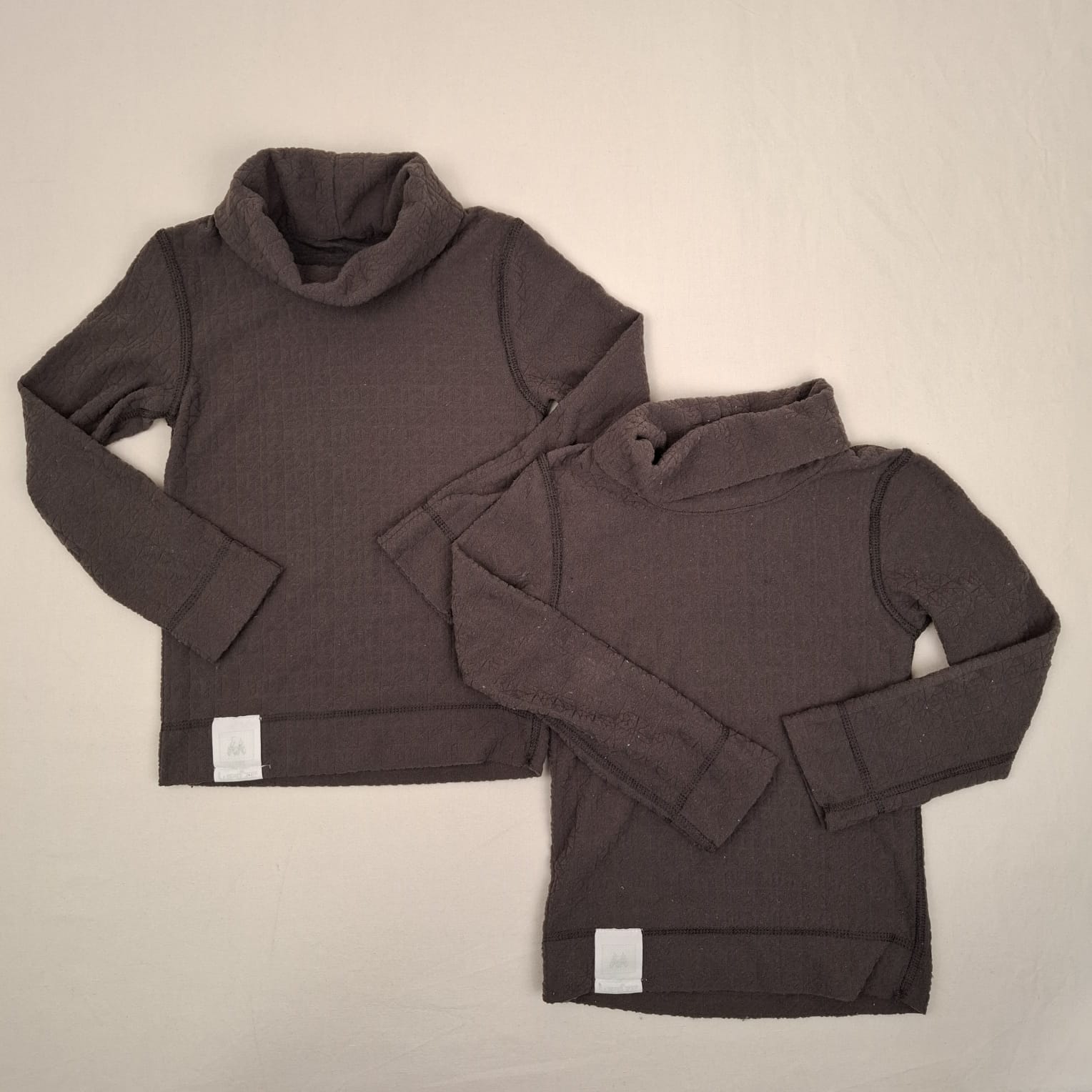 Autres commentaires : Lot de 2 T-shirts col roulé identique, tissu molleton, Wed’ze, estimé a 5ans, étiqueette avec logo Wedze brodé en bas du vêtement