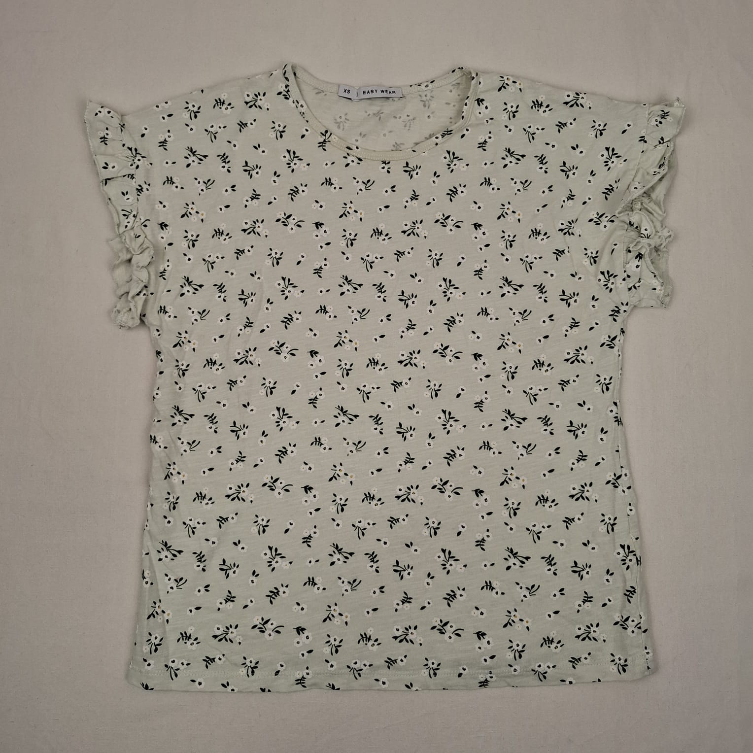 Autres commentaires : T-shirt à manches courtes blanc avec des motifs de fleurs, col rond.