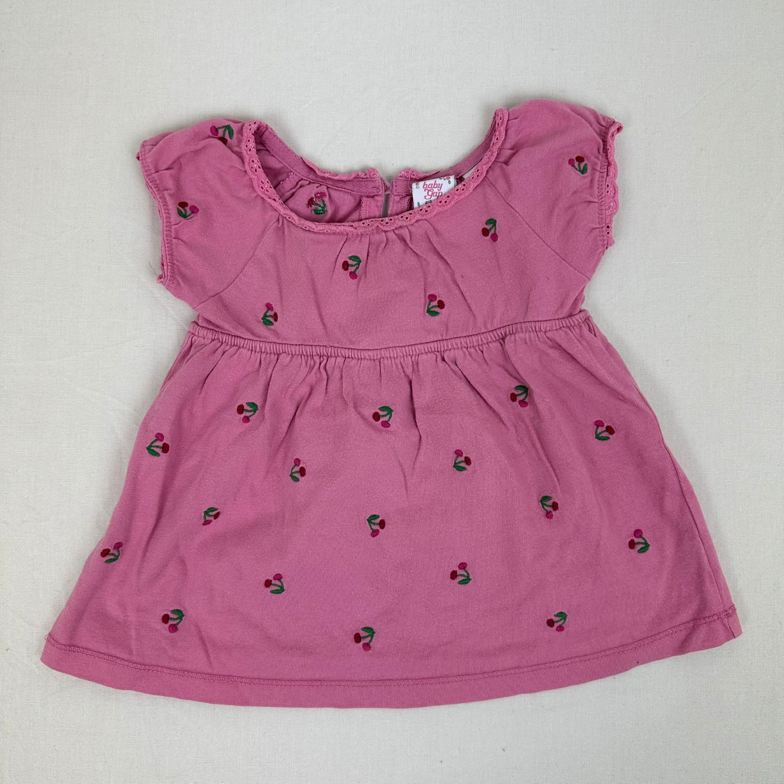 Autres commentaires : Robe rose avec motif fleurs et une fermeture au dos par boutons.