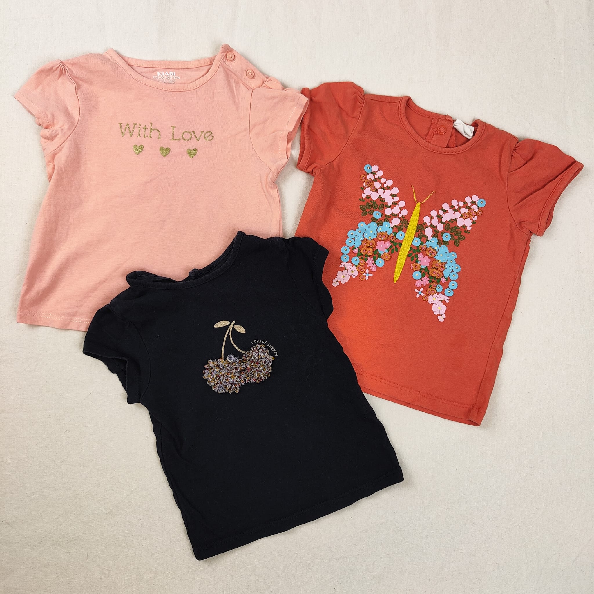 Autres commentaires : Lot de 3 t-shirts saumon, bleu marine et rose, avec motifs