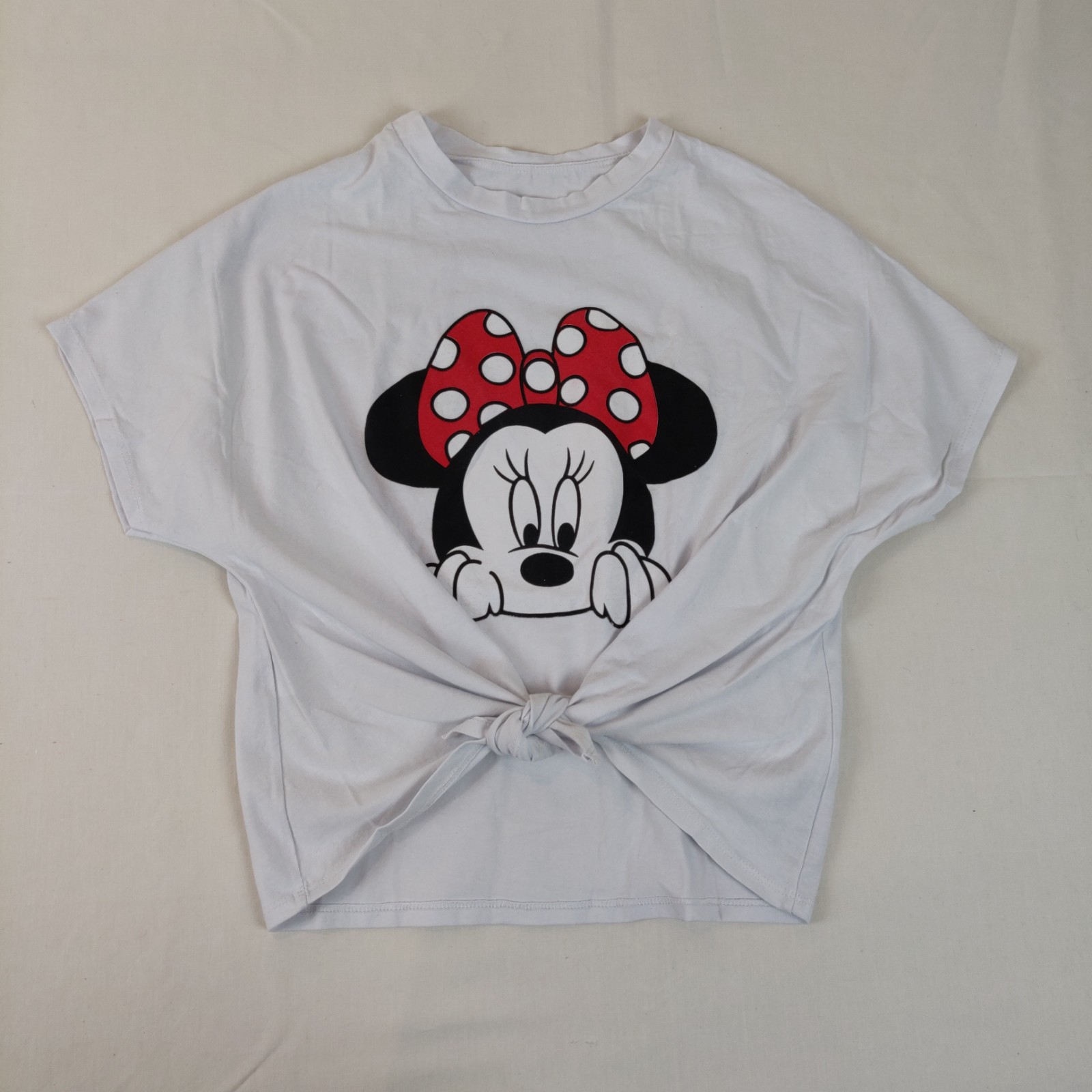 Autres commentaires : 5% élasthanne. T-shirt manches courtes à nouer (taille estimée 14 ans) – blanc avec motif Minnie.