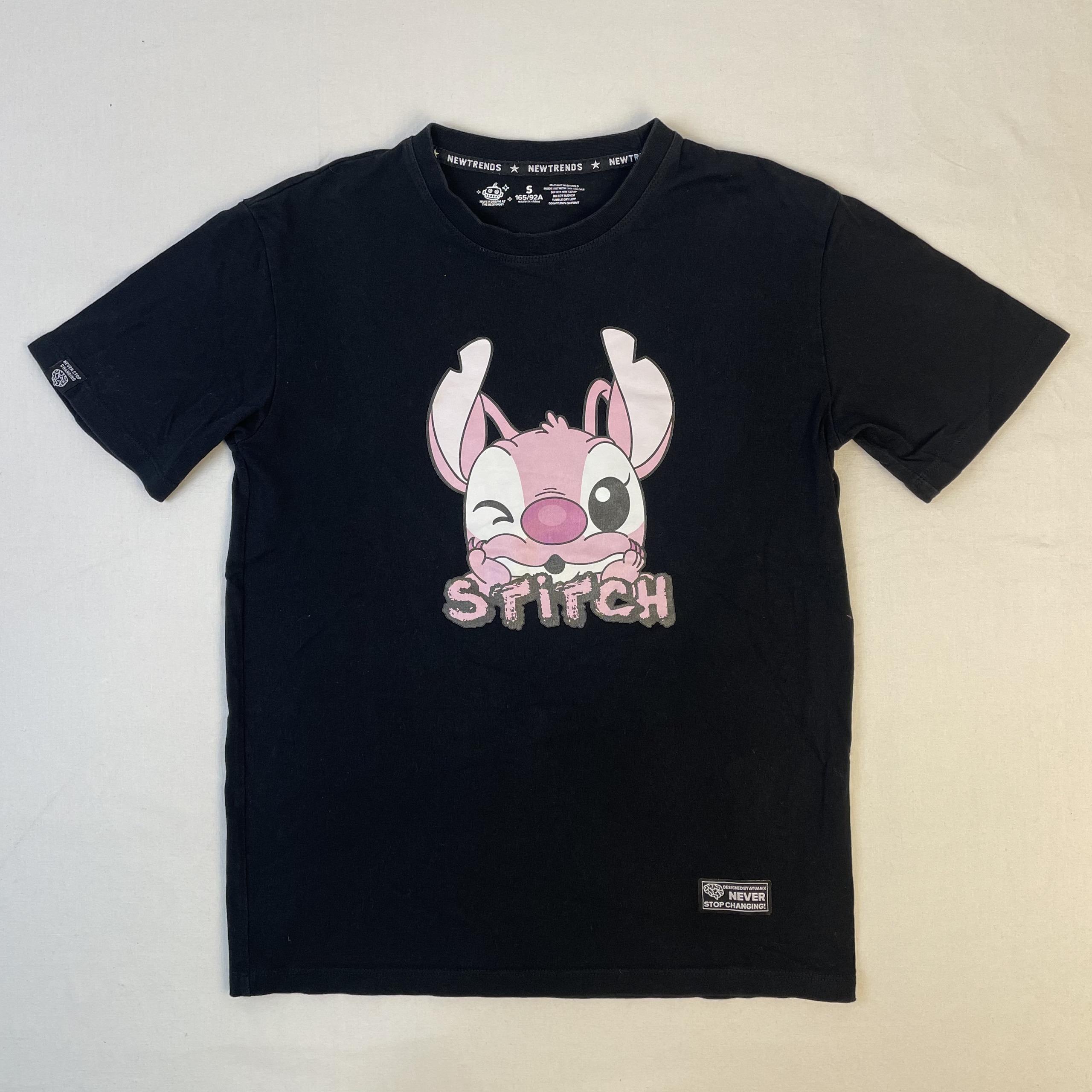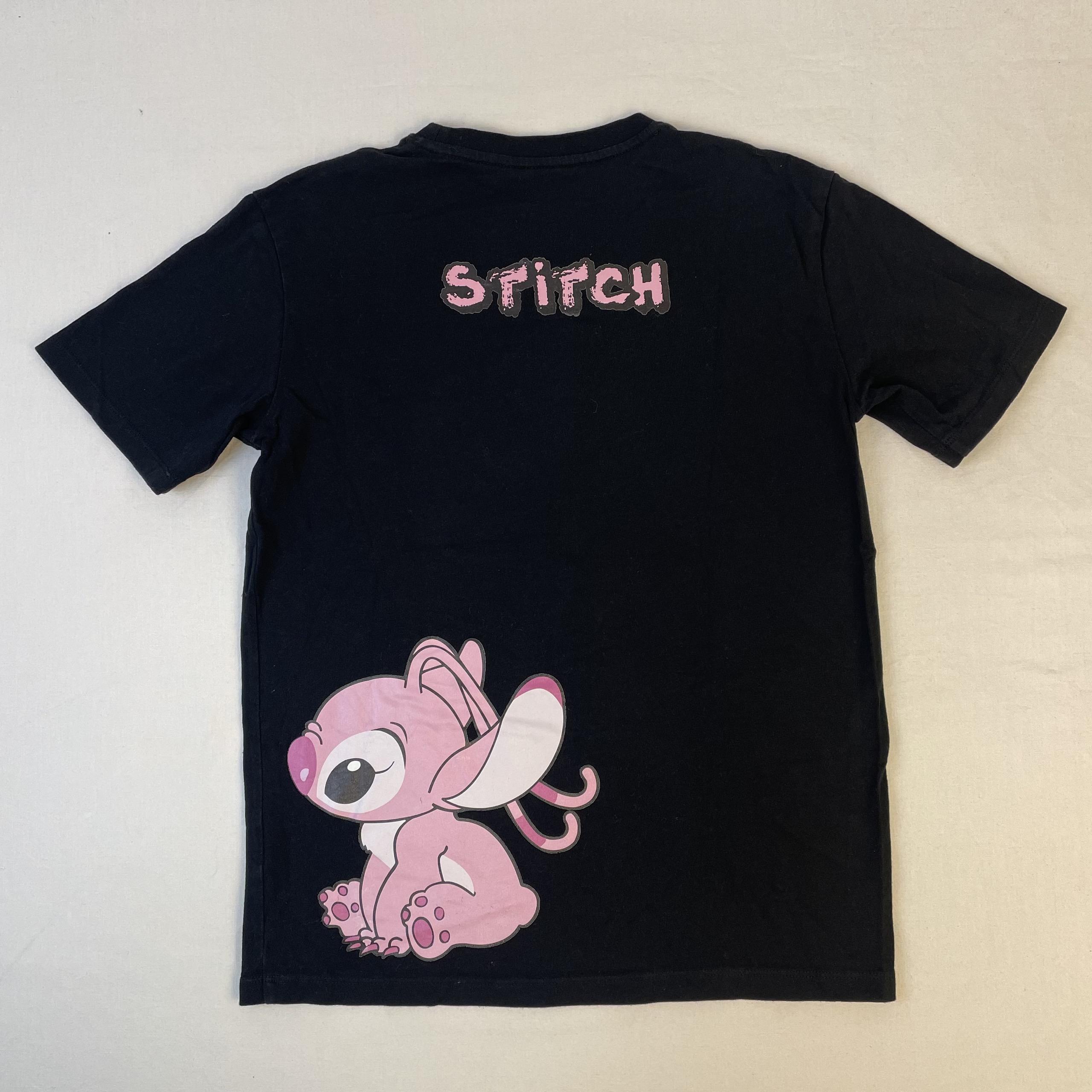 - T-shirt noir avec le personnage de Stitch en rose à l’avant et à l’arrière