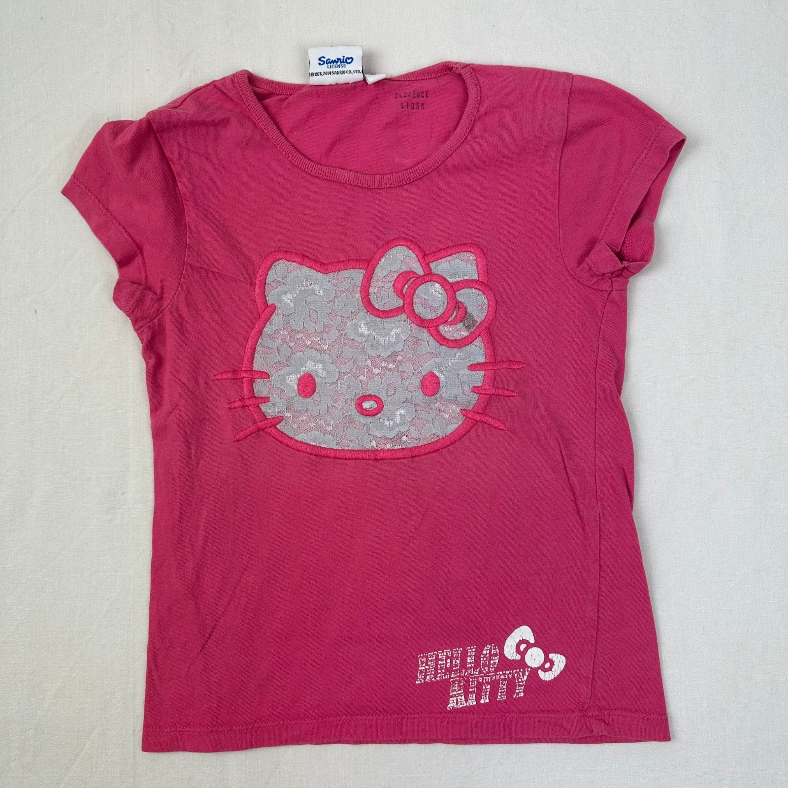 Autres commentaires : T-shirt manches courtes rose avec motif le logo face de Hello Kitty gris.