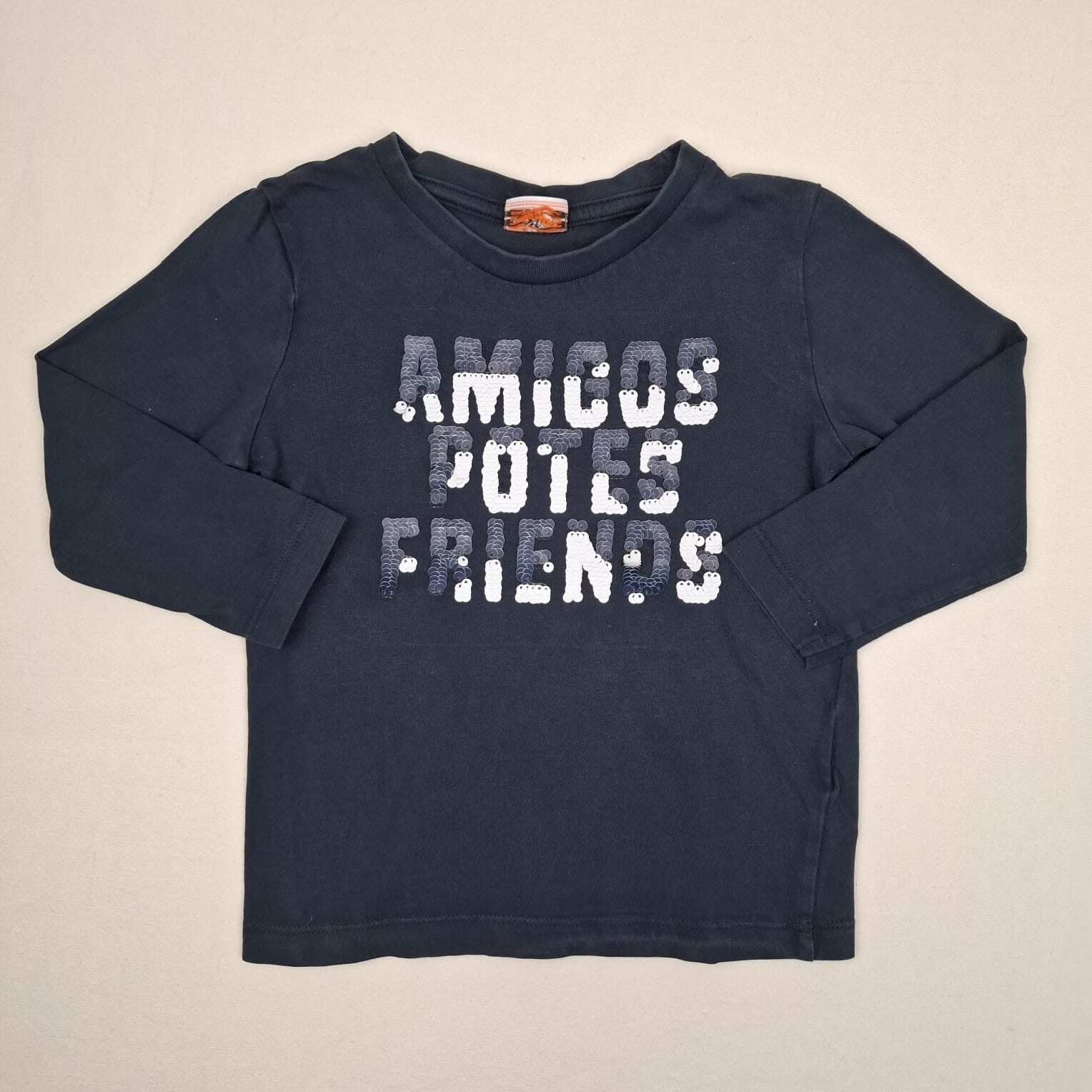 Autres commentaires : T-shirt manches longues, col rond, tape à l’oeil, inscription sequin « AMIGOS POTES FRIENDS »