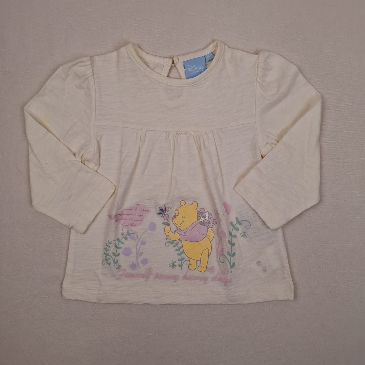 Autres commentaires : T-shirt manches longues Disney 23M façon robe , blanc/jaune avec dessin de winnie l’ourson à l’avant