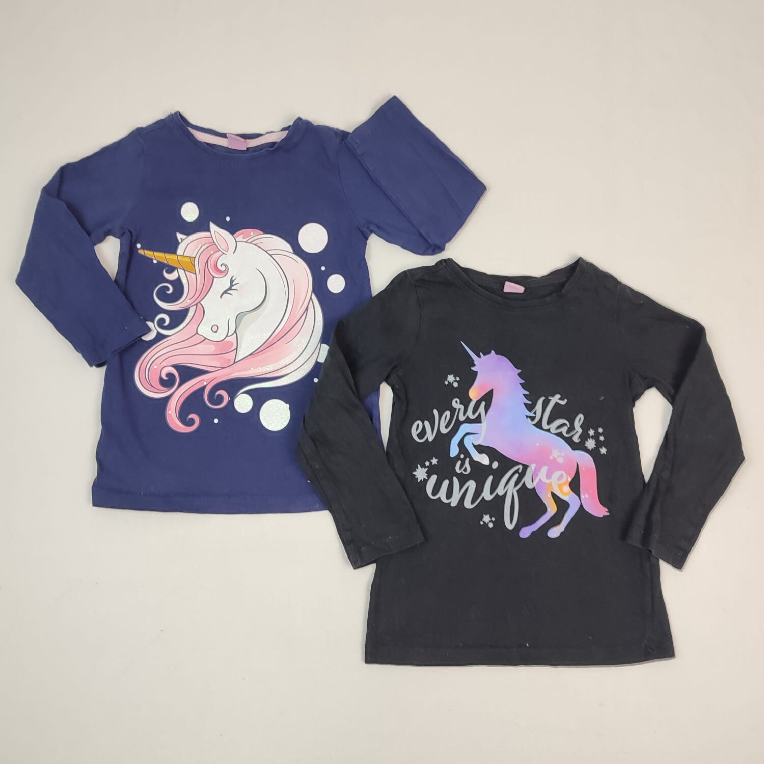 Autres commentaires : Lot de 2 t-shirt manches longues motif licorne : 1 noir avec inscription en gris « Every star is unique » et 1 bleu foncé.