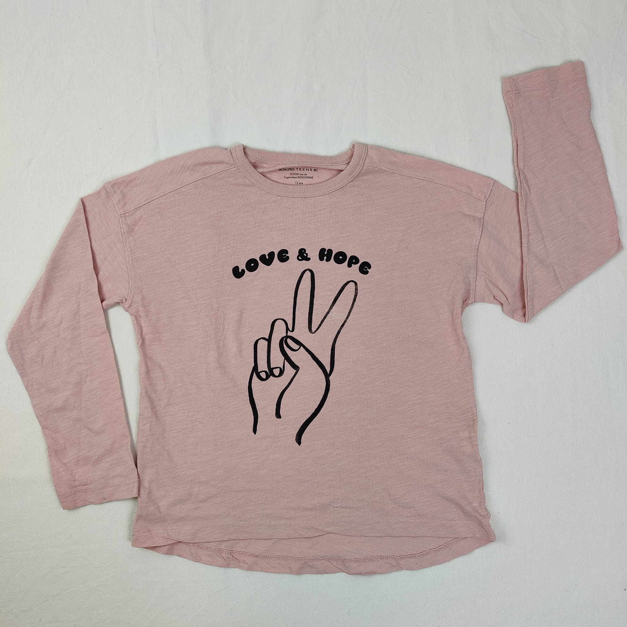 Autres commentaires : T-shirt imprimé love & hope , coton biologique , une petite tache discrete