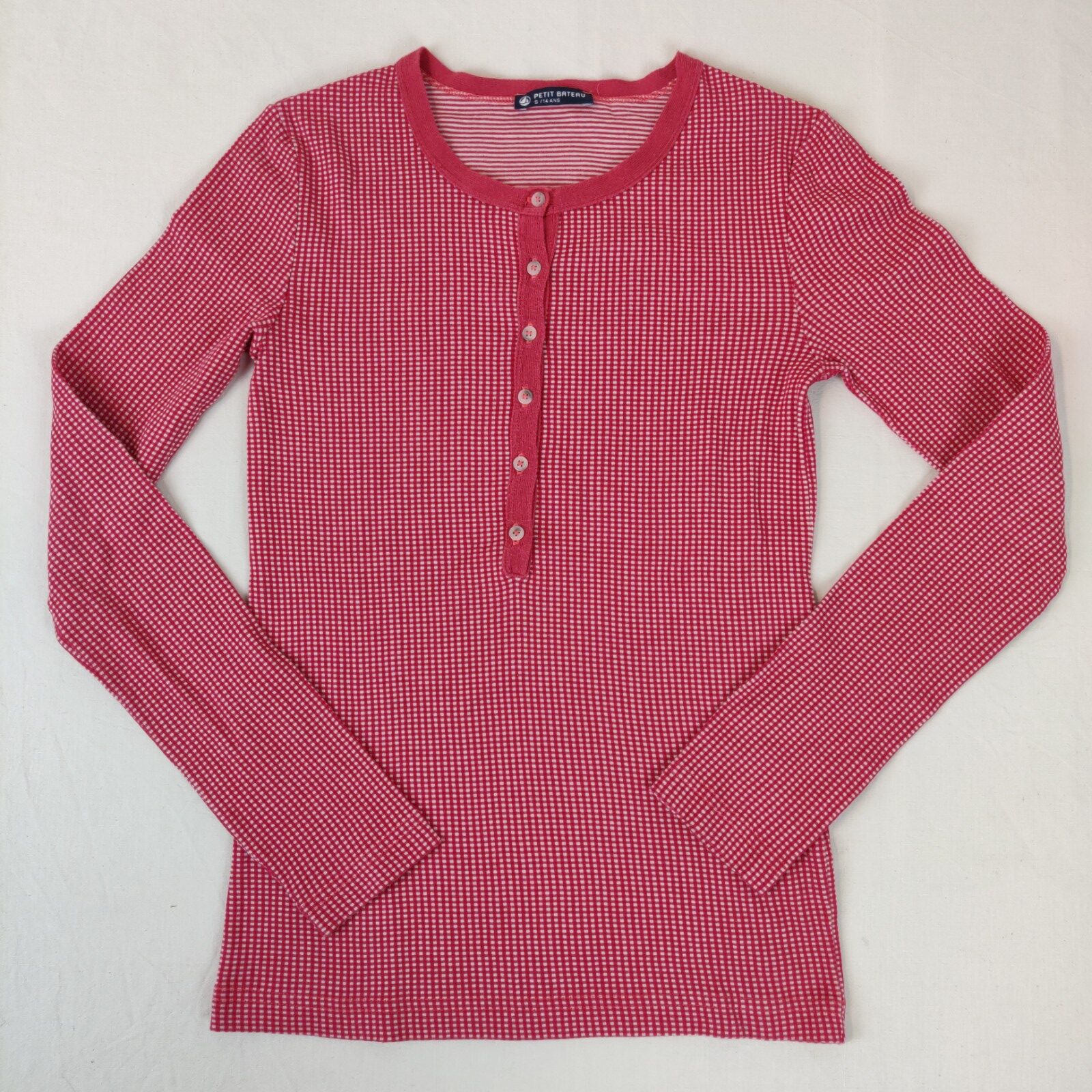 Autres commentaires : T-shirt manches longues col rond à boutonnière, imprimé vichy