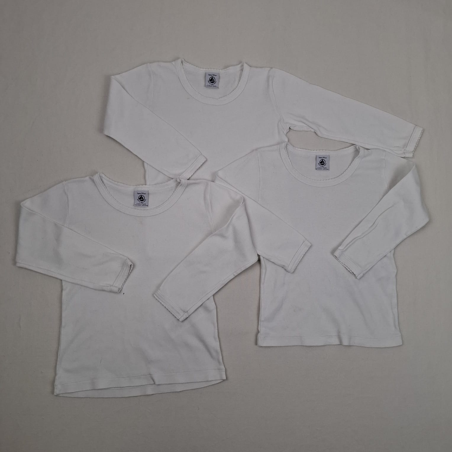 Autres commentaires : Lot de 3 T-shirts manches longues unis blancs Petit bateau, col rond.