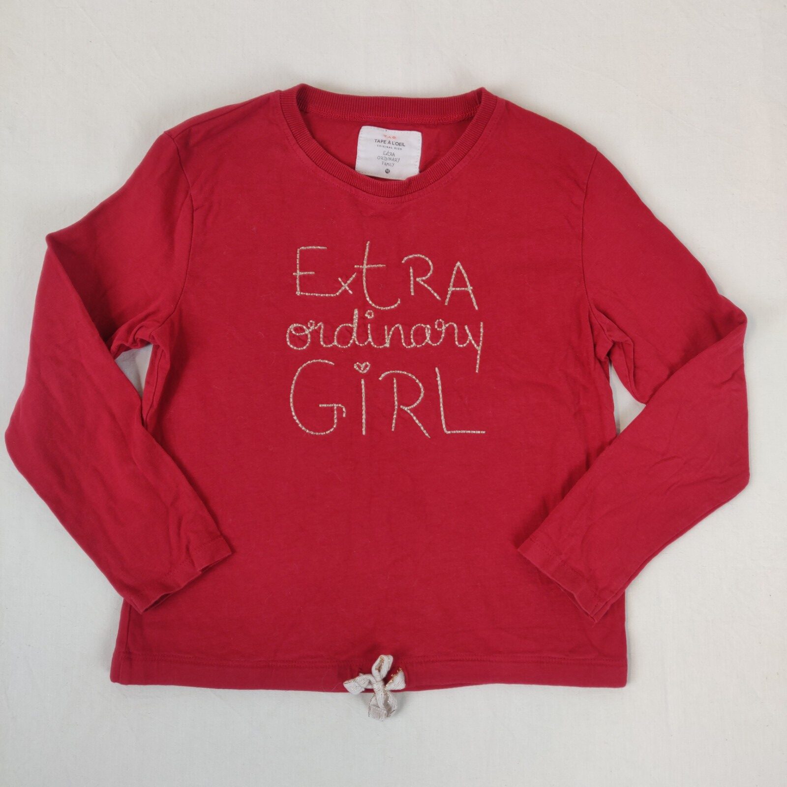 Autres commentaires : T-shirt à manches longues – rouge. Inscription centrale cousue dorée « Extraordinary Girl ». Taille cintrée avec cordon interne blanc et cuivré.