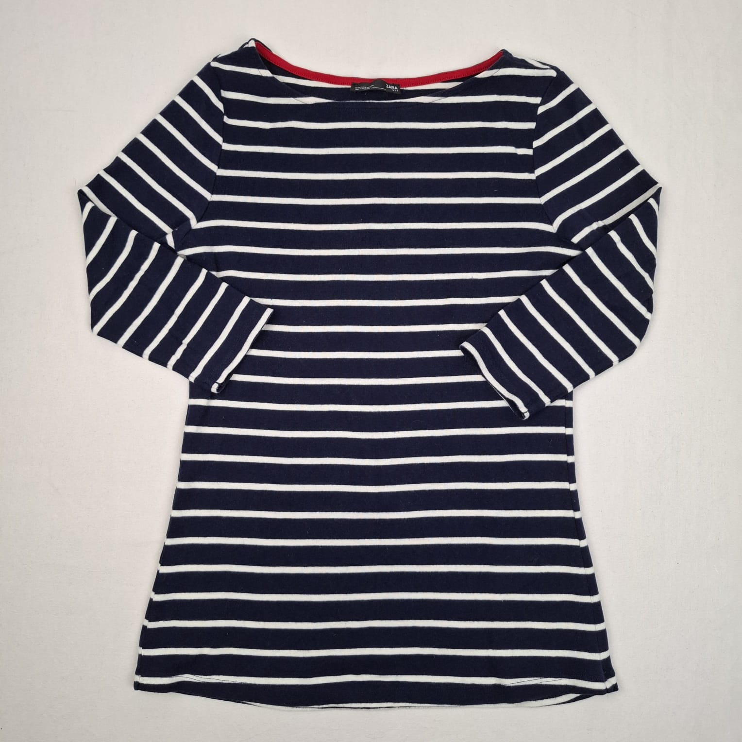 Autres commentaires : T-shirt à rayures blanches et marine à manches longues 3/4, col rond, taille M