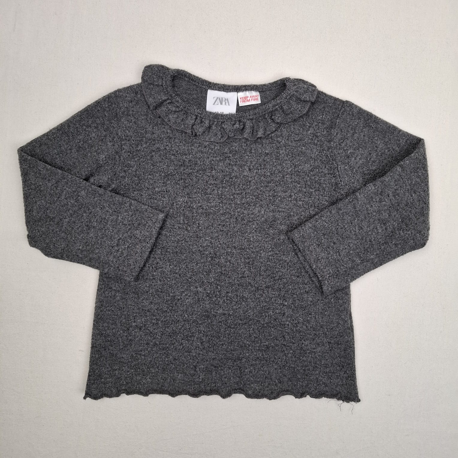 Autres commentaires : 27% viscose, 3% élasthanne. T-shirt grise chaud à manches longues, col collerette