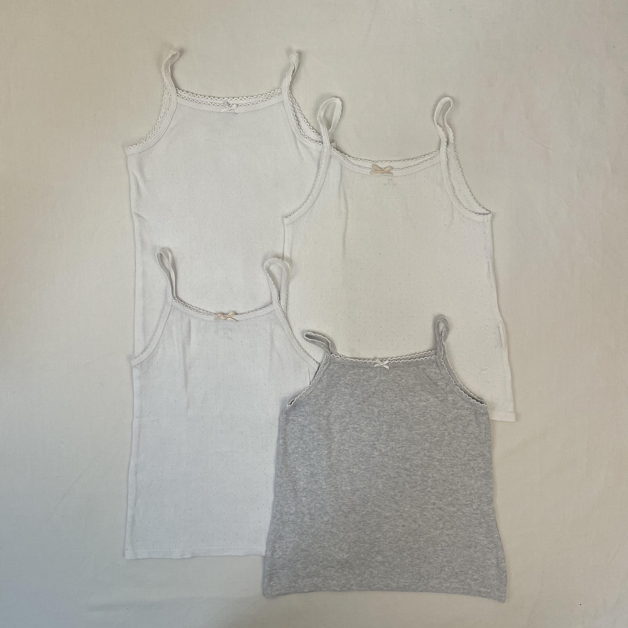 - Lot de 3 débardeurs : 3 blancs et 1 gris.