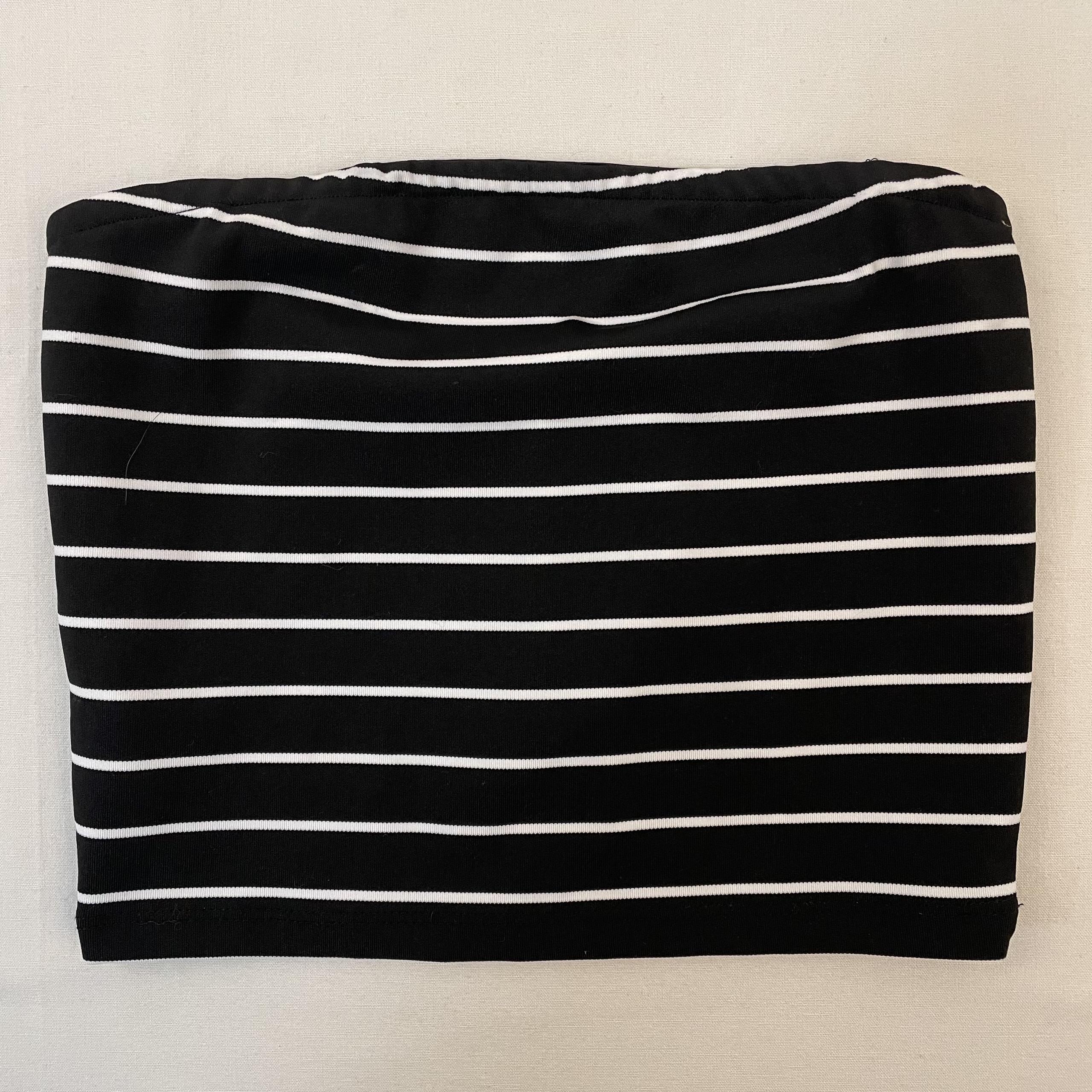 - Top bandeau noir à rayures blanches, haut élastiqué.