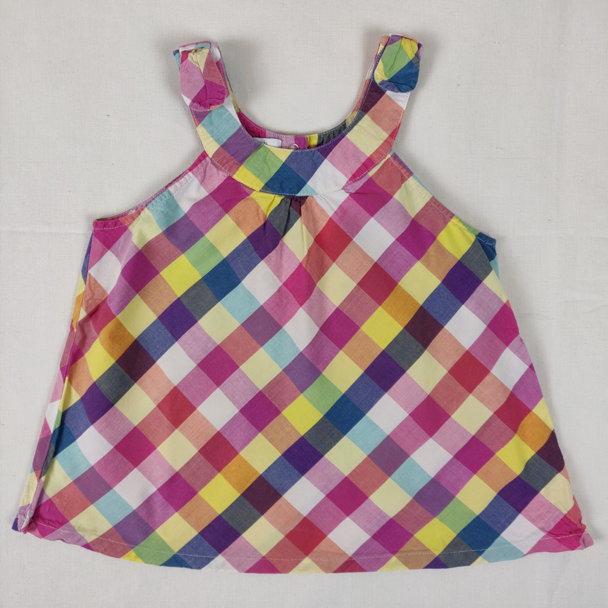 Autres commentaires : Top sans manches style madras , col arrondi, boutonnière de 3 boutons pression en haut du dos.