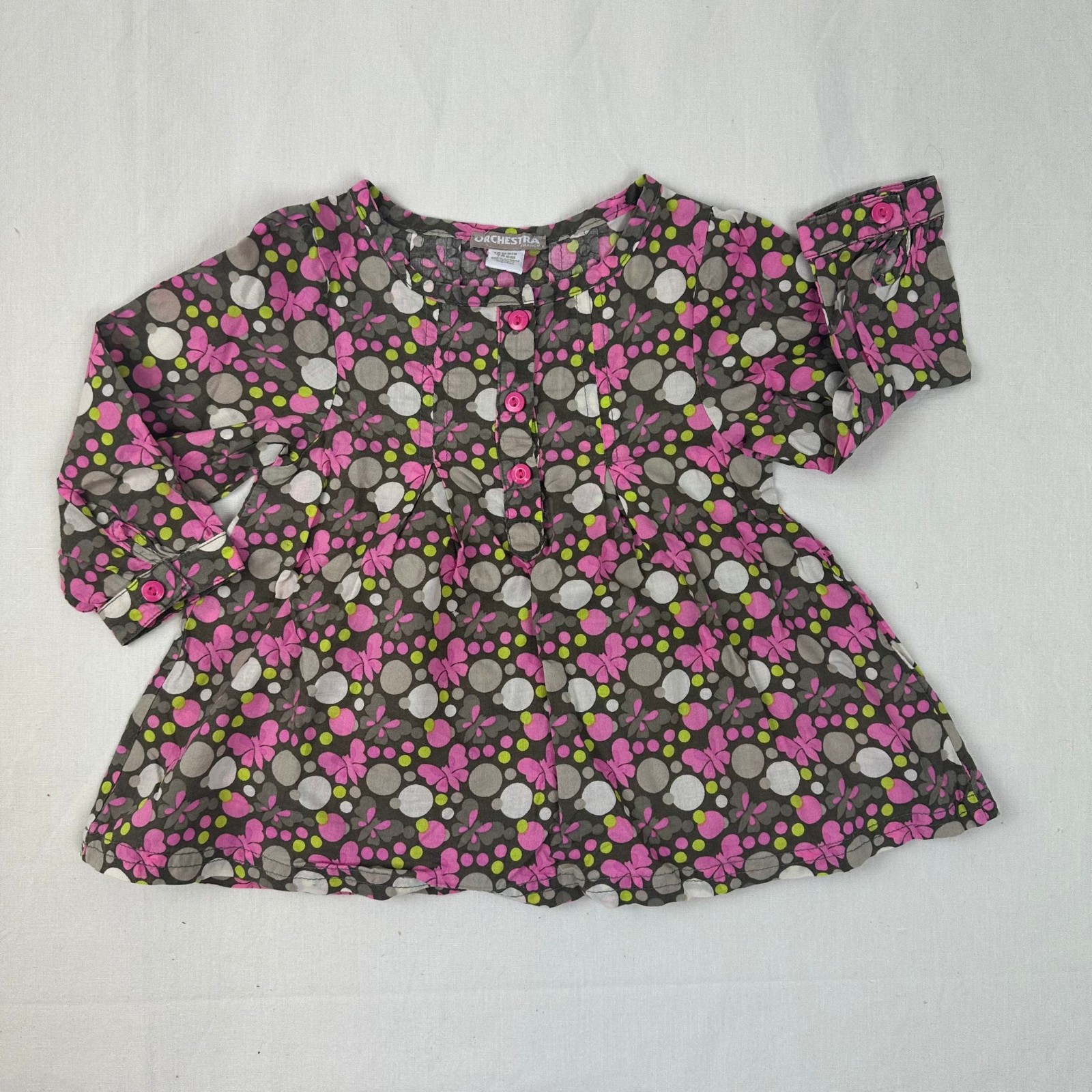 Autres commentaires : Tunique vert fleuri avec une fermeture par boutons devant.