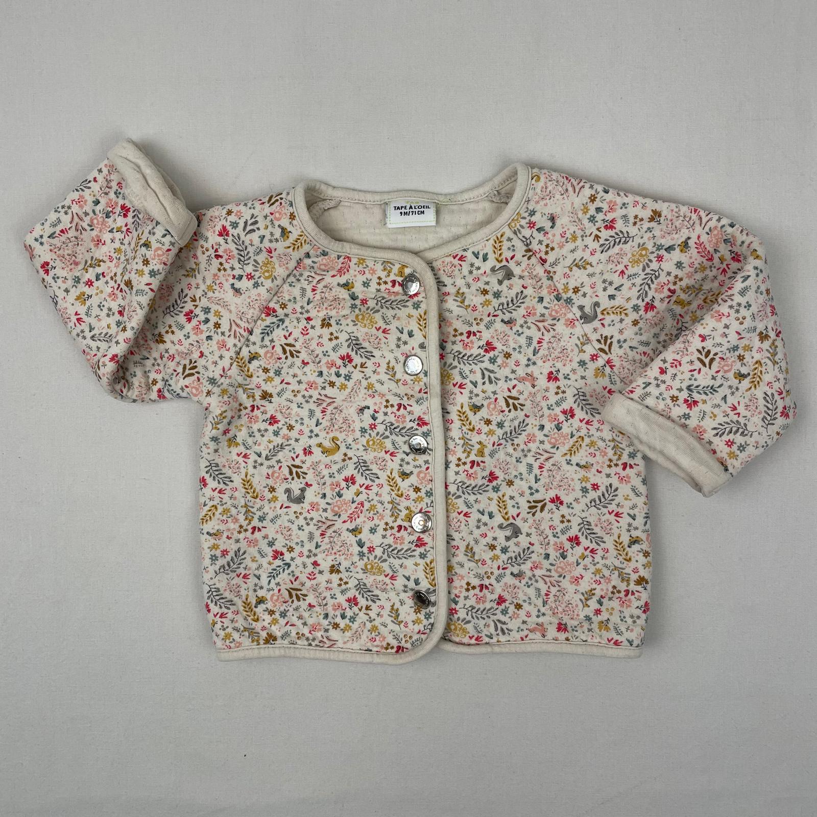 Autres commentaires : Veste à imprimé fleuri matelassée fermée par des boutons pression devant. Ourlets aux manches. 24% polyester.