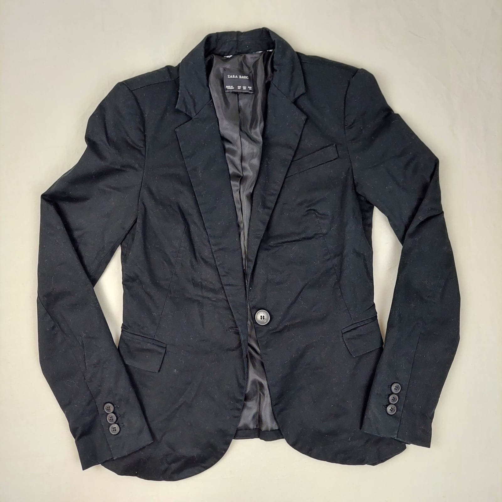 Autres commentaires : 2%élasthanne, Veste noir un bouton épaule rembouré, doublure 100% polyester