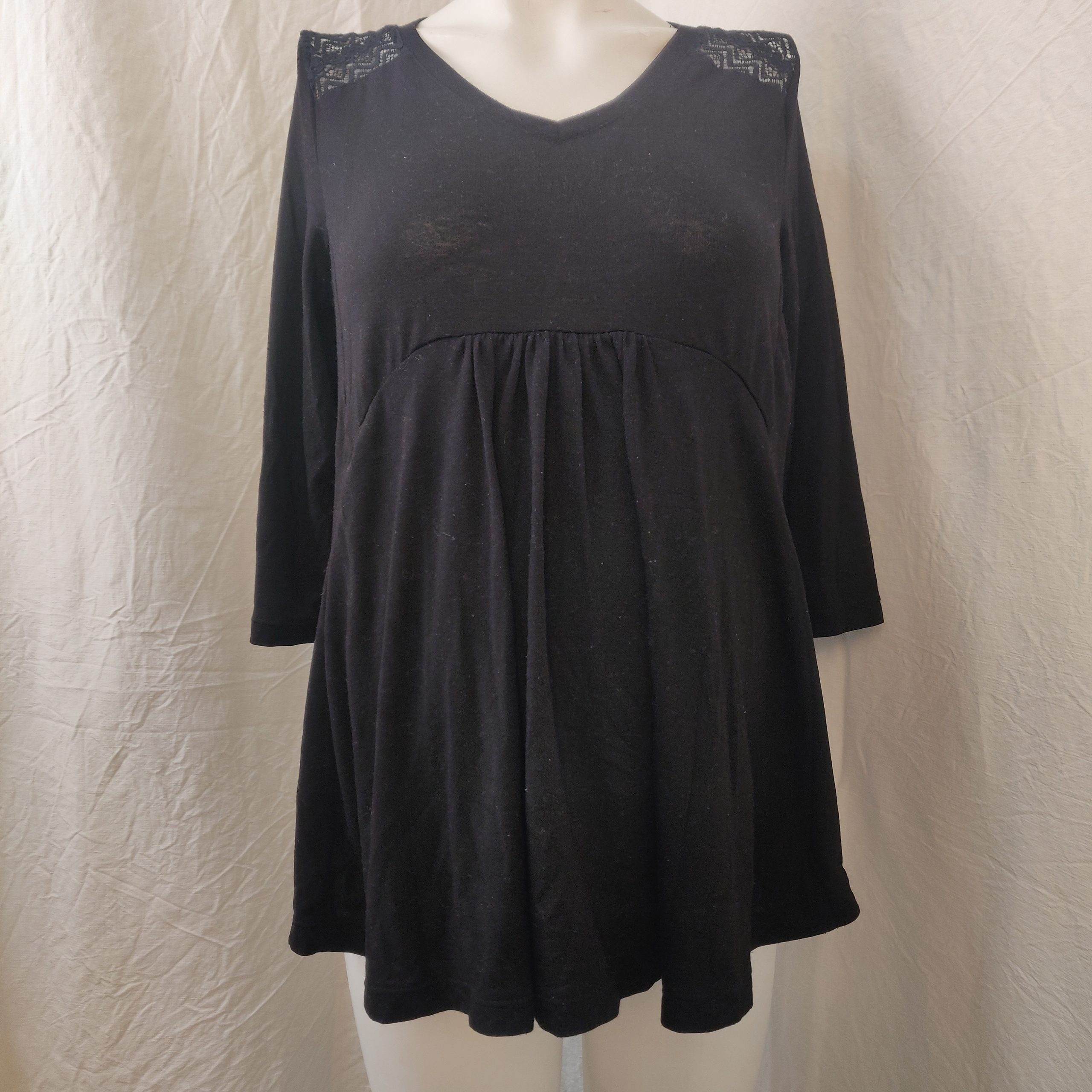 - T-shirt à manches longues décontracté de taille 36 (EU S), pour future maman. Les épaules sont en tissus de dentelles noir.