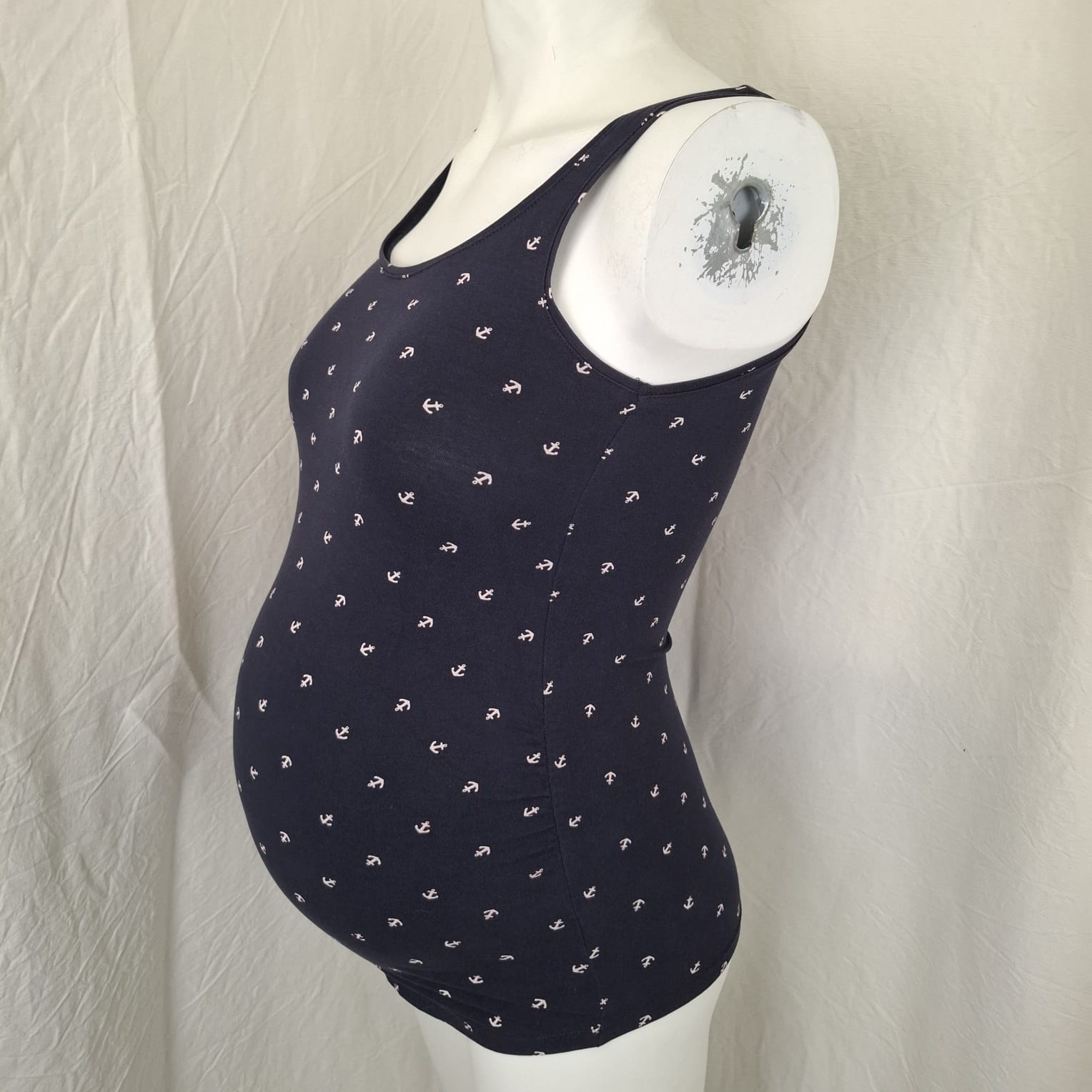 Autres commentaires : T-shirt sans manche façon débardeur bleu marine avec motifs d’ancre rose H&M Mama taille S