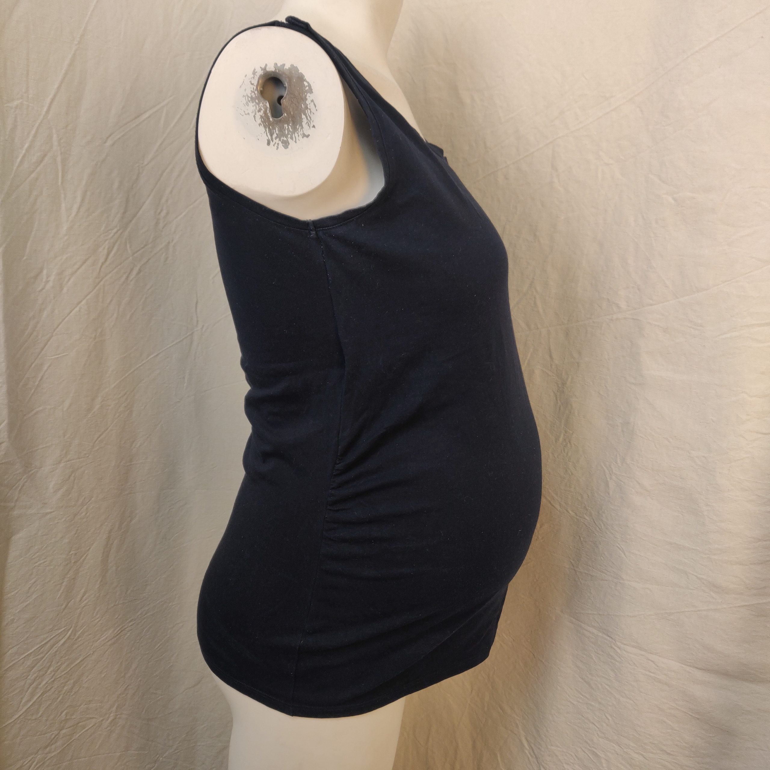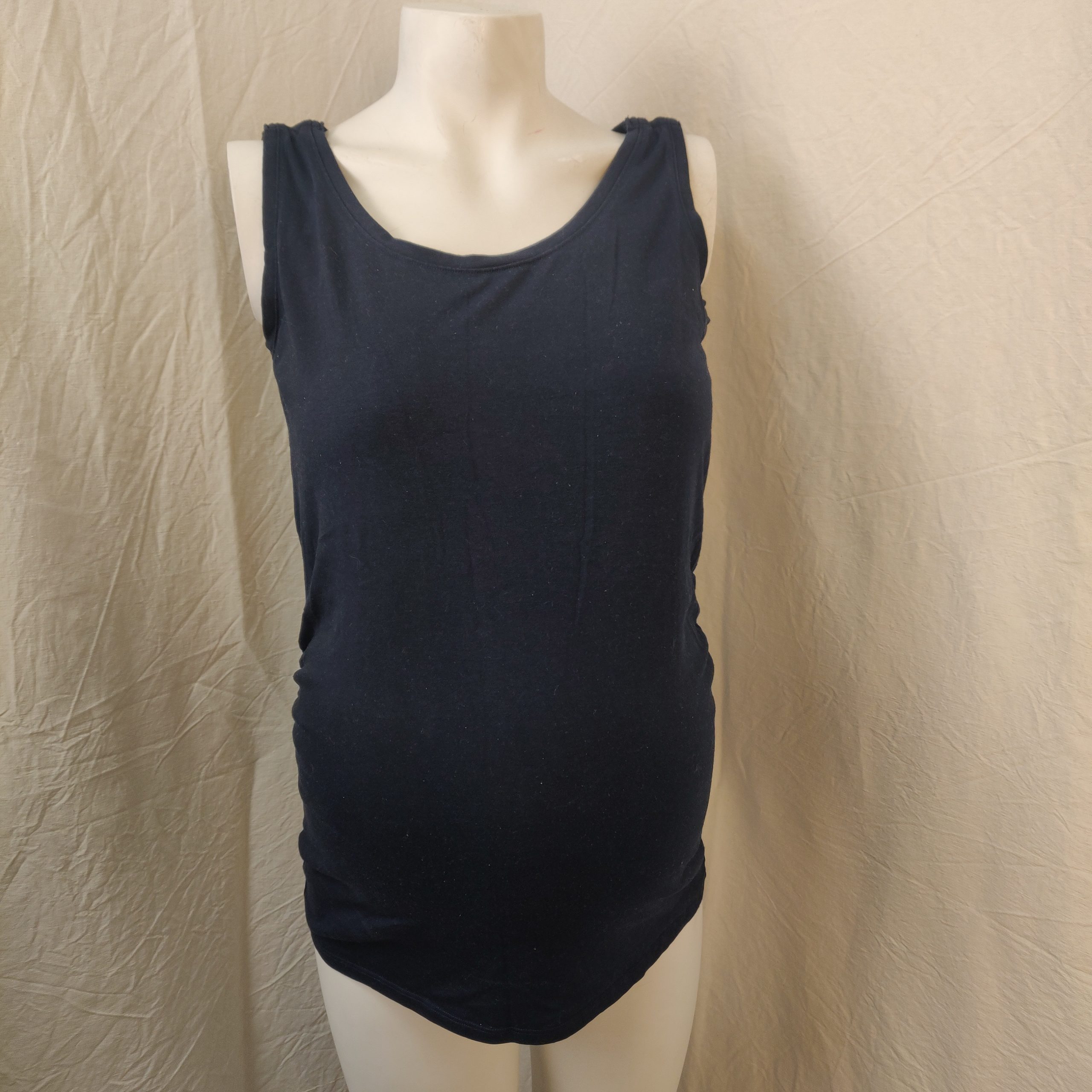 - T-shirt sans manches bleu foncé de taile 38/40 (L), avec 2 boutons de préssion par épaules.