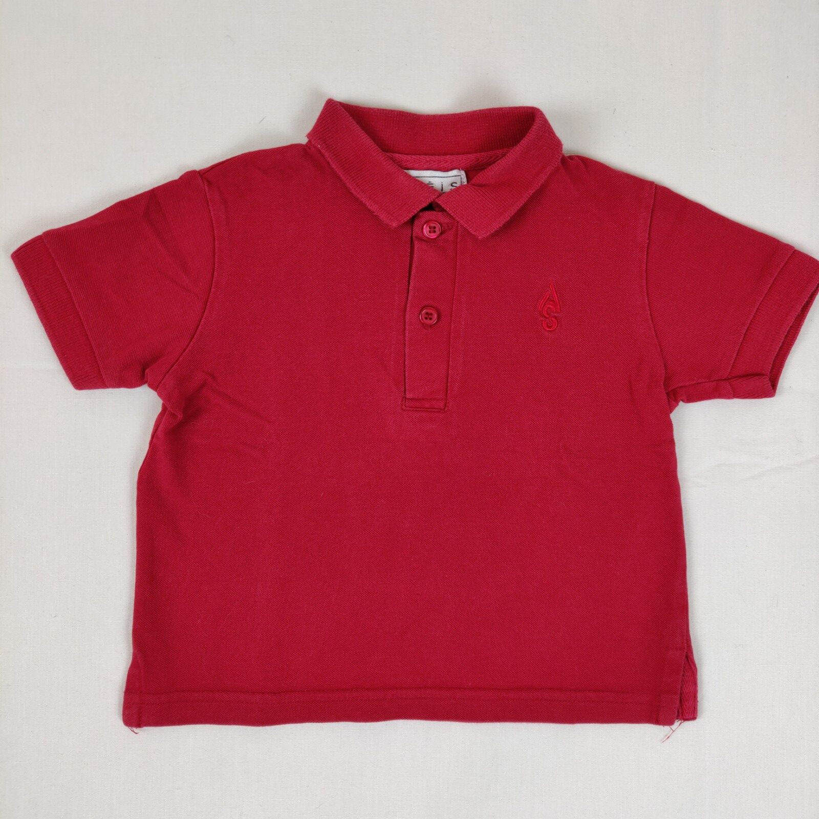 Autres commentaires : Polo à manches courtes – rouge avec griffe de la marque cousue au centre. Ouverture centrale à 2 boutons classiques. Petites échancrures latérales à la taille. Usure normale du vêtement.
