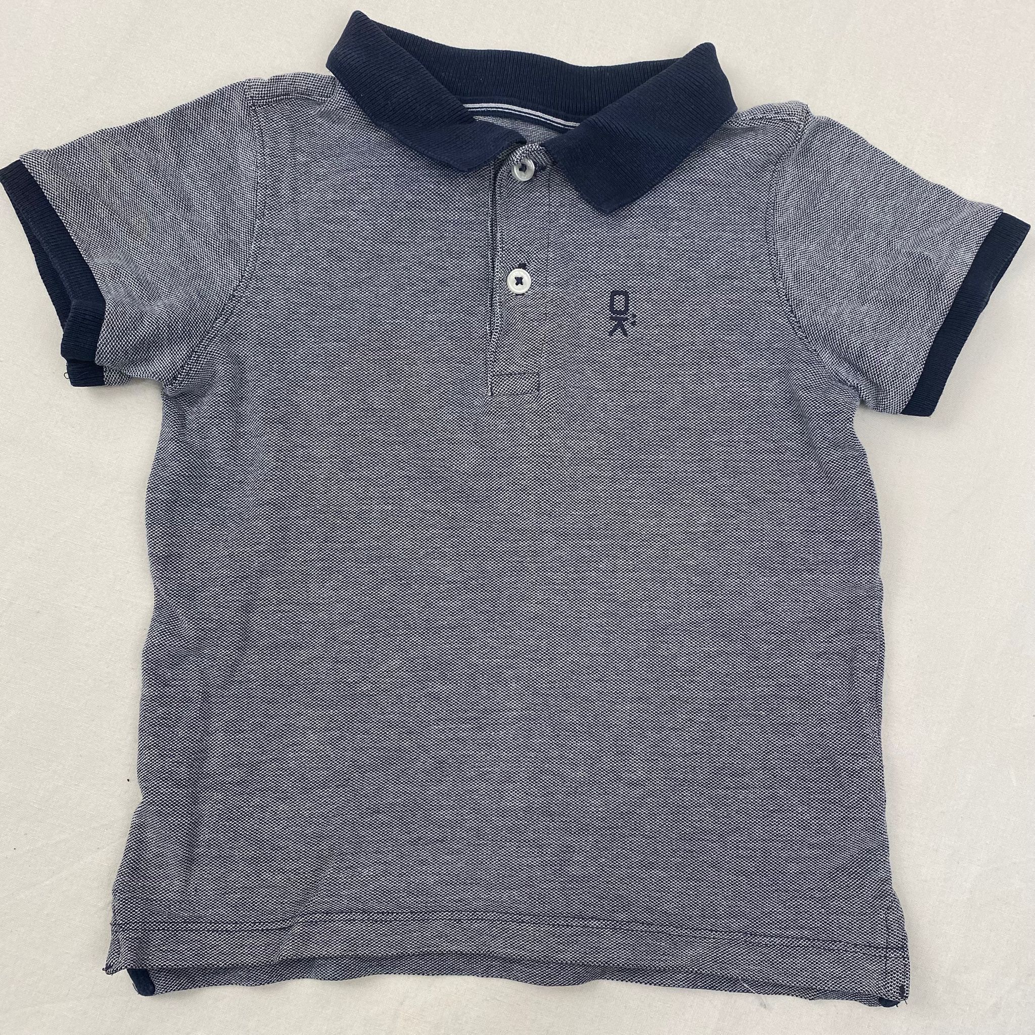 Autres commentaires : Polo manches courtes en maille piquée et tramée de bleu foncé et blanc, col et liseré des manches foncé.
