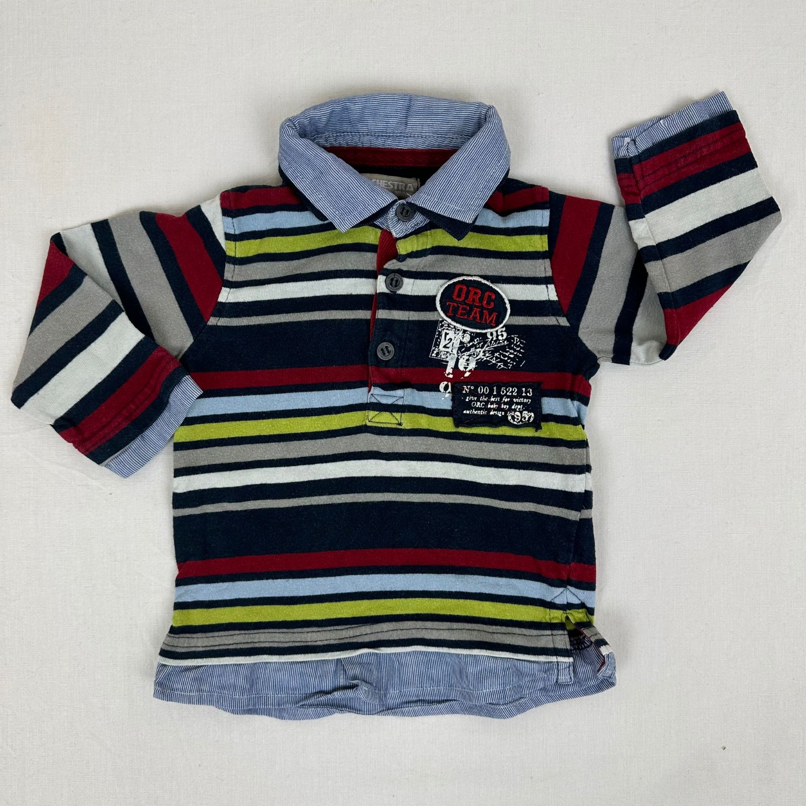 Autres commentaires : Polo manches longues multicolores avec une fermeture devant par boutons.