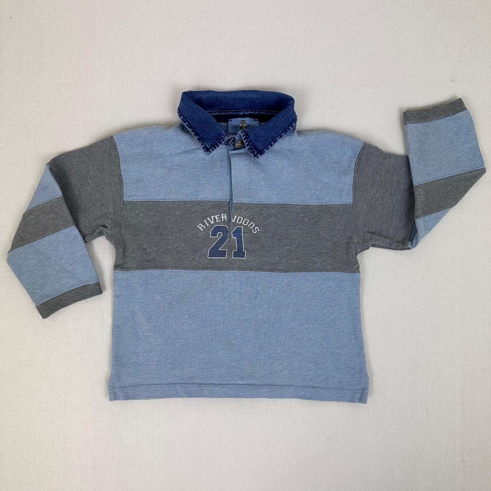 Autres commentaires : Polo manches longues bleu claire et milieu gris marqué River Woods.