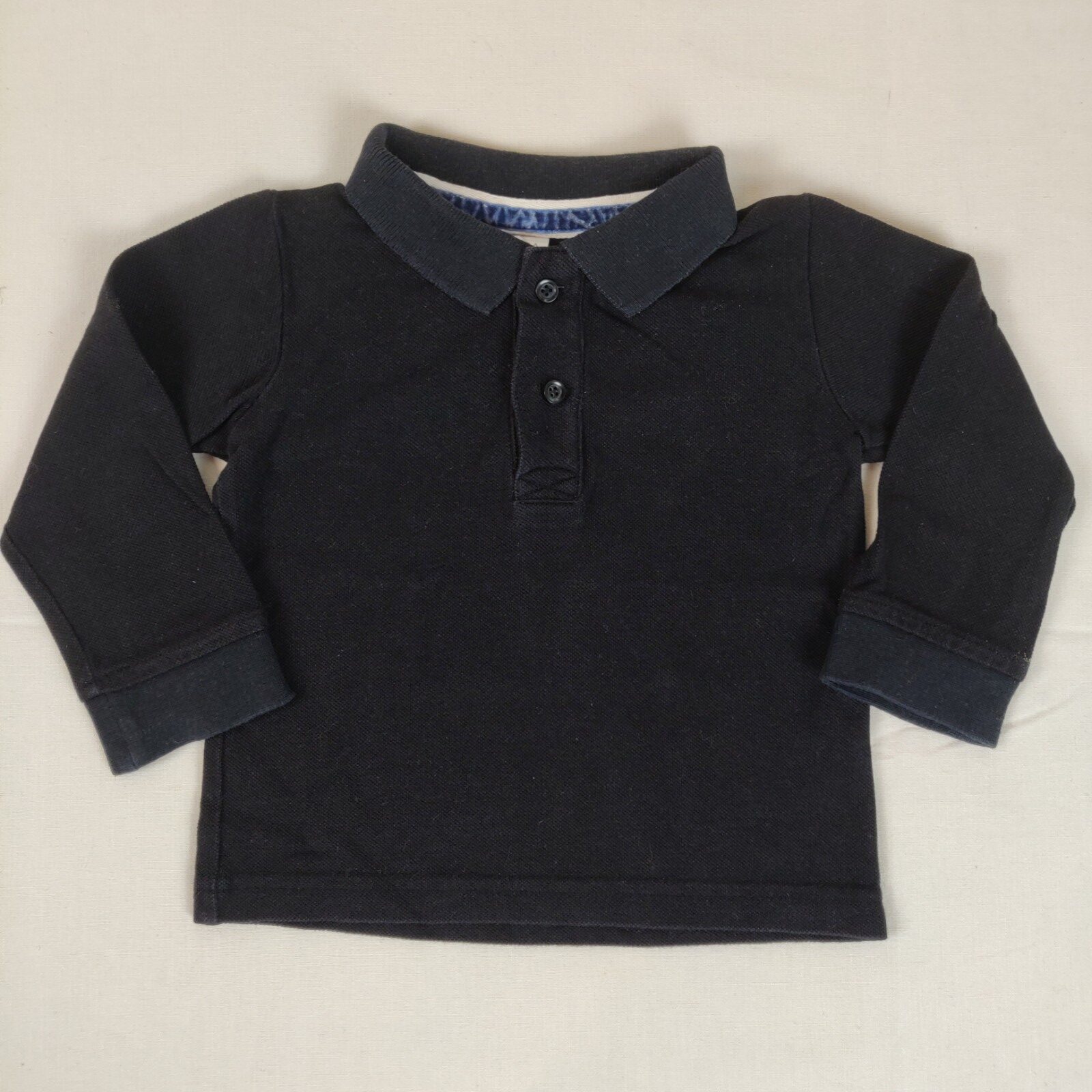 Autres commentaires : Polo à manches longues – noir. Ouverture centrale à 2 boutons classiques. Usure normale du vêtement.