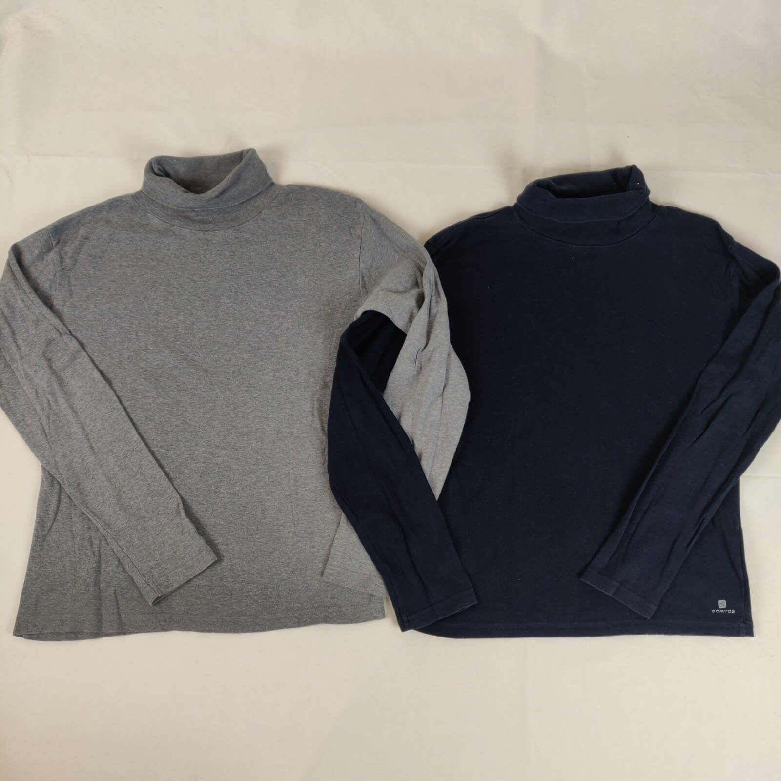 Autres commentaires : Lot de 2 t-shirts à manches longues et à col roulé. Un t-shirt bleu marine et un t-shirt gris chiné. Léger effet pelucheux.