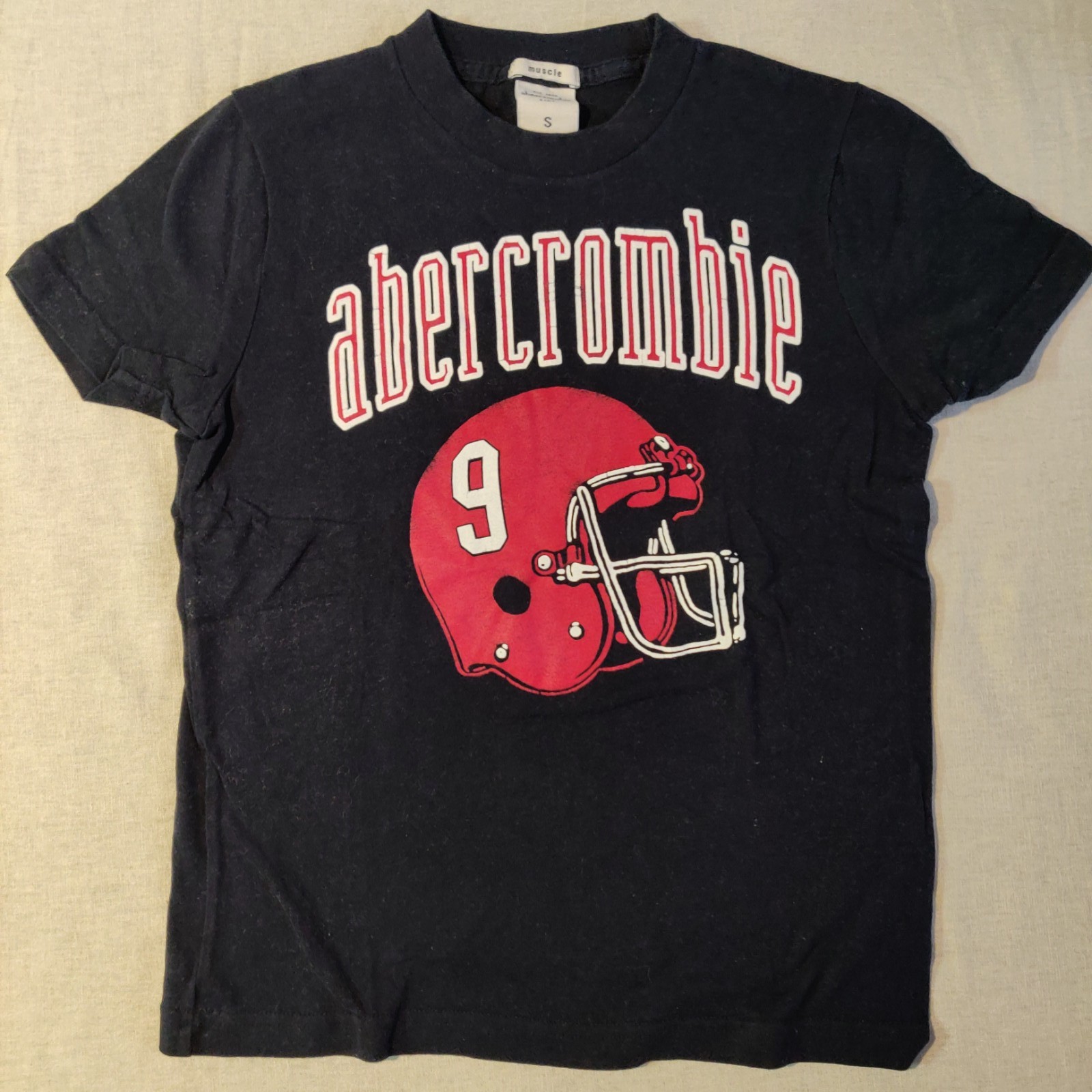 Autres commentaires : T-shirt manches courtes noir, dessin floqué casque de football américain rouge et blanc. Taille S, correspond à 10 ans.